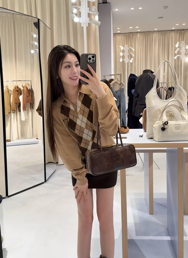 New! Latest Miu 25New diamond pattern knit lapel polo top. Size: S, M, L, D, D,