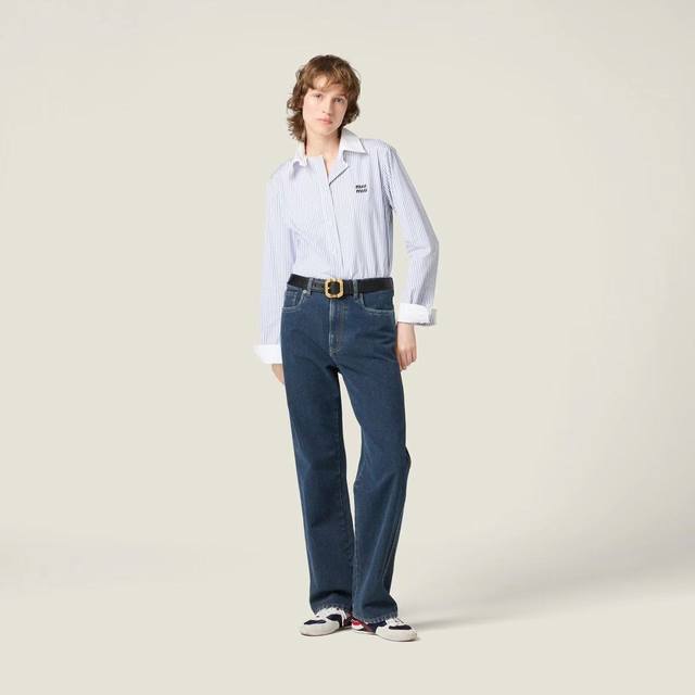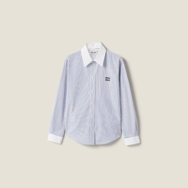 New! Latest Miu 25New letter embroidered yarn-dyed striped shirt. Size: Sml.