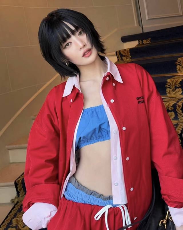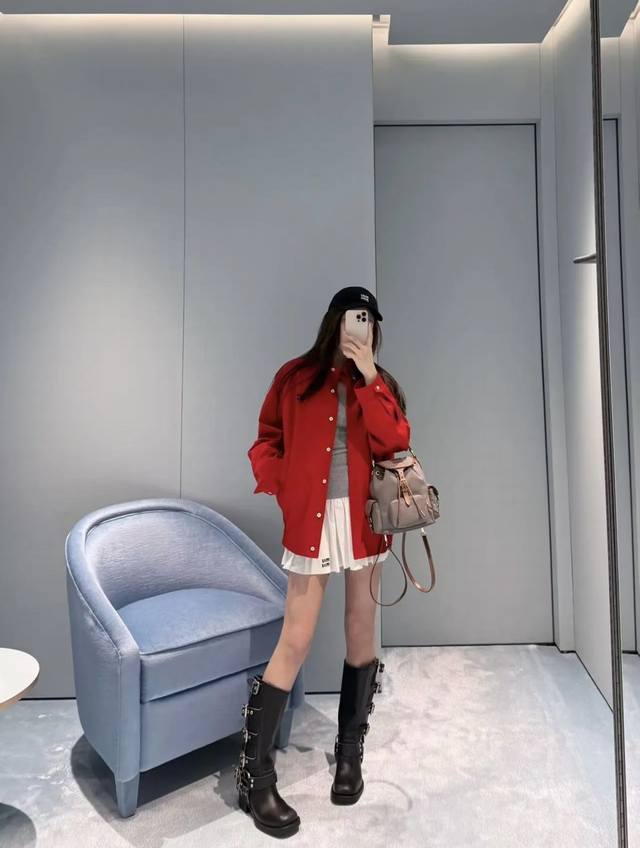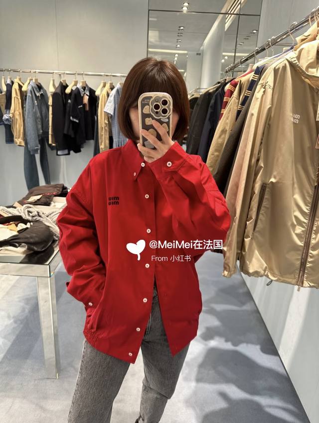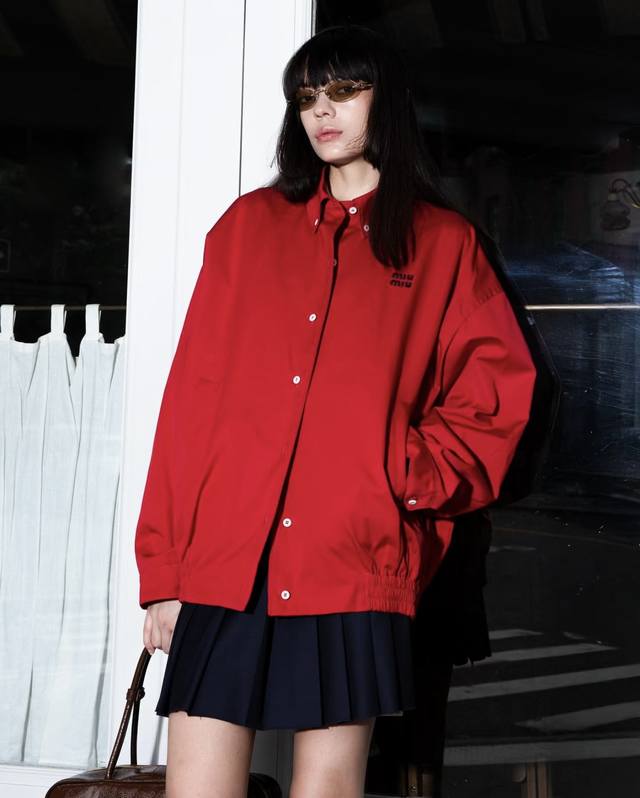 New! Latest Miu 25New red jacket with letter embroidery Size: Sml