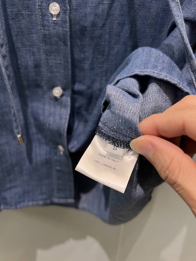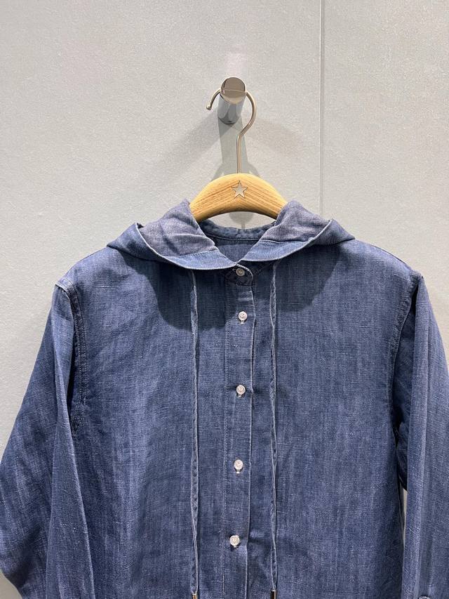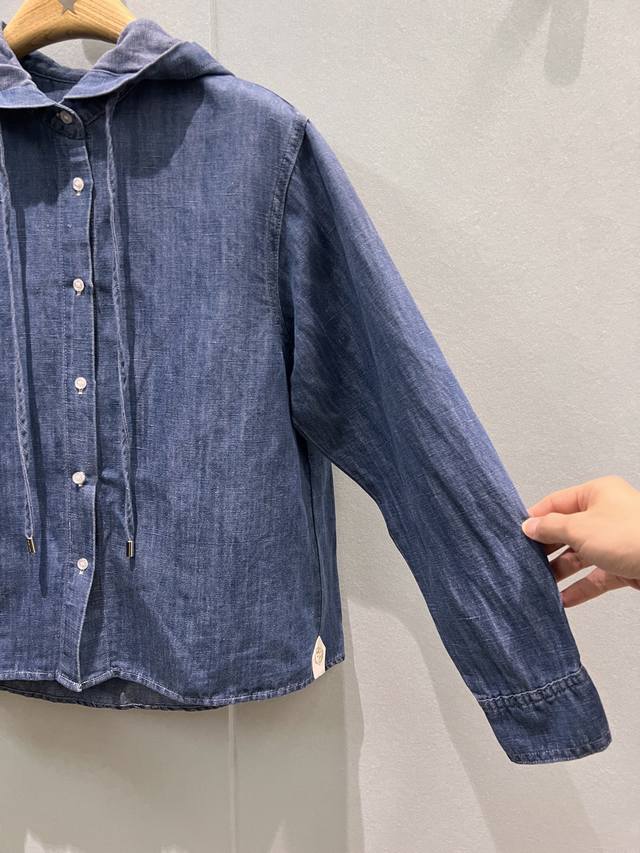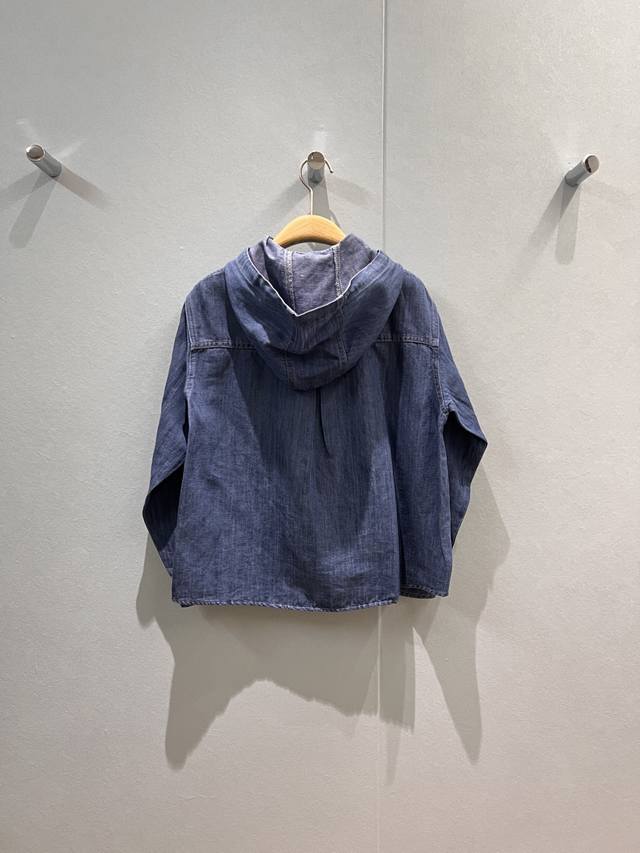 New Lp blue denim hooded shirt loose short hem logo leather label decoration sweet and cute age-reducing all-match Sml