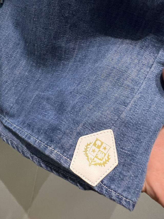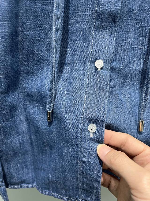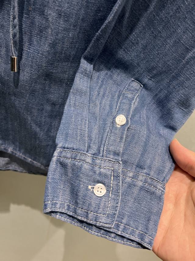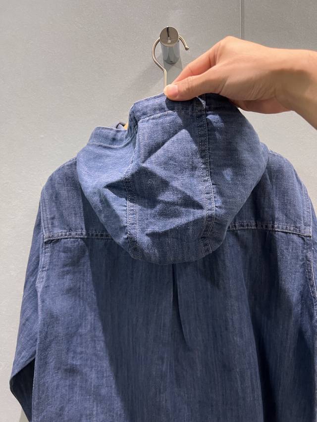 New Lp blue denim hooded shirt loose short hem logo leather label decoration sw