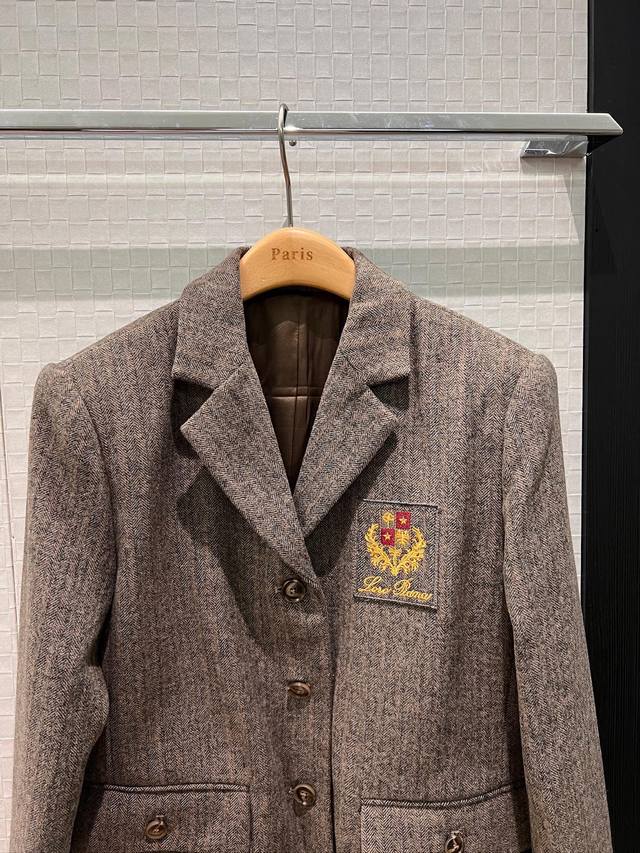 New Lp Maillard Pattern Wool Suit Jacket with Embroidered Badge on Chest, Casual, Stylish, Versatile for Commuters, Sml DDD