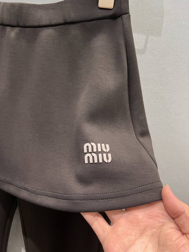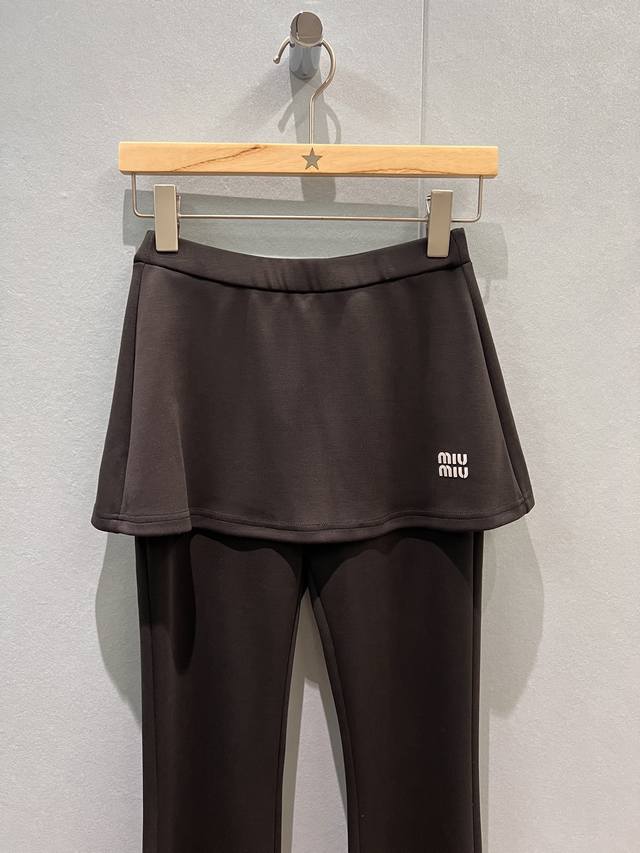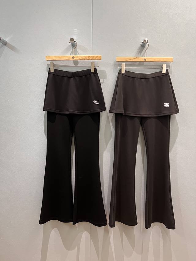 / New Miu series spliced skirt fake two-piece slightly flared pants elastic waist