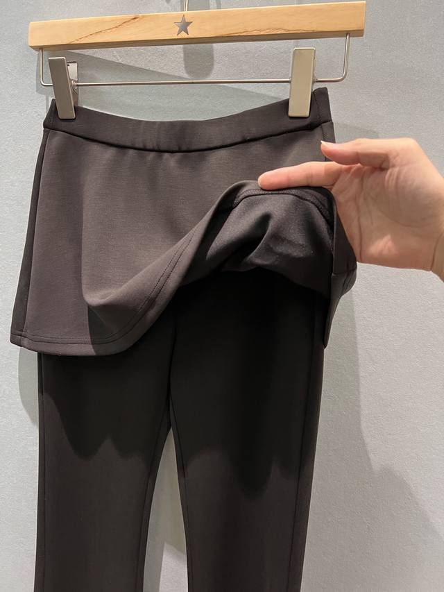 New Miu series spliced skirt fake two-piece slightly flared pants elastic waist leisure sports yoga fitness slimming black dark gray S-Xl