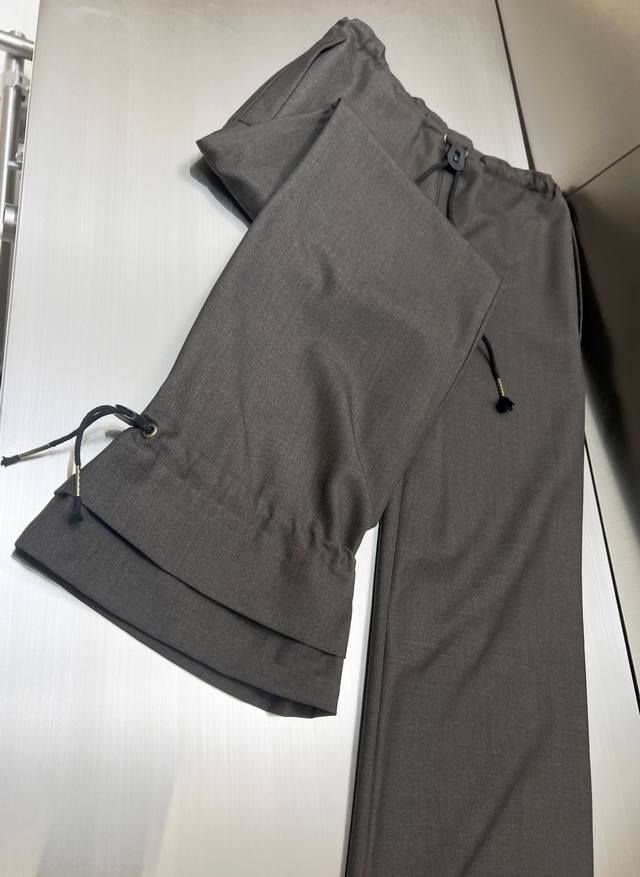 2025 autumn and winter new double-layer drawstring wool trousers, a pair of pants that combine design and practicality. Thickened wide-leg worsted wool fabric with high-quality texture will make you fall in love with it at first sight. The unique double-layered trouser legs can be freely adjusted to the size, which is fashionable and exquisite. You can wear it in many ways and match it with various styles of tops. The wide-leg version has an elastic waistband that can be adjusted to give it a casual and relaxed feel. The classic four-line decorative accessories are all custom-made, which is a special bonus. There are many details worth savoring.