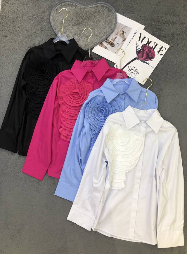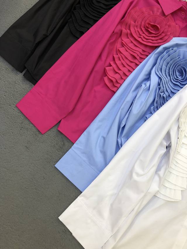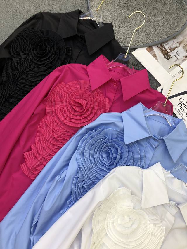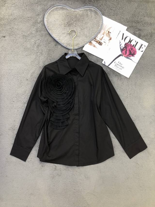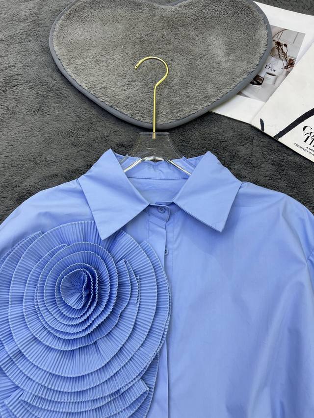 niche design pleated three-dimensional large flowers fashionable and chic stunning street shirt