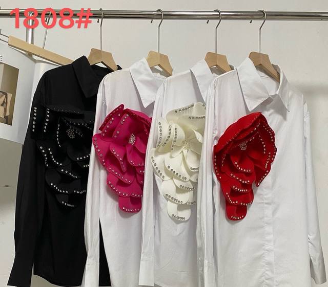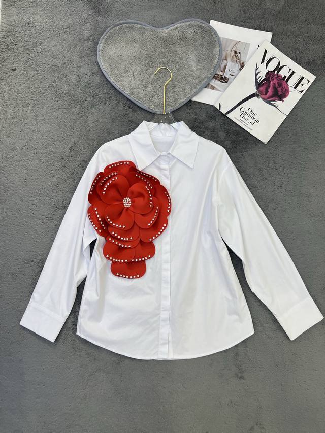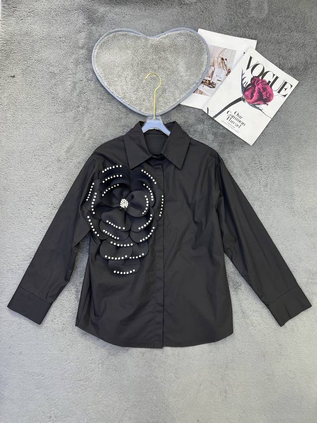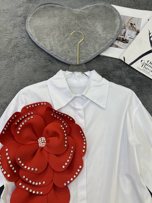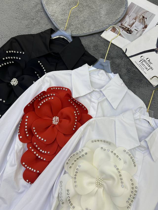 New niche unique diamond-studded three-dimensional flower shirt Sml