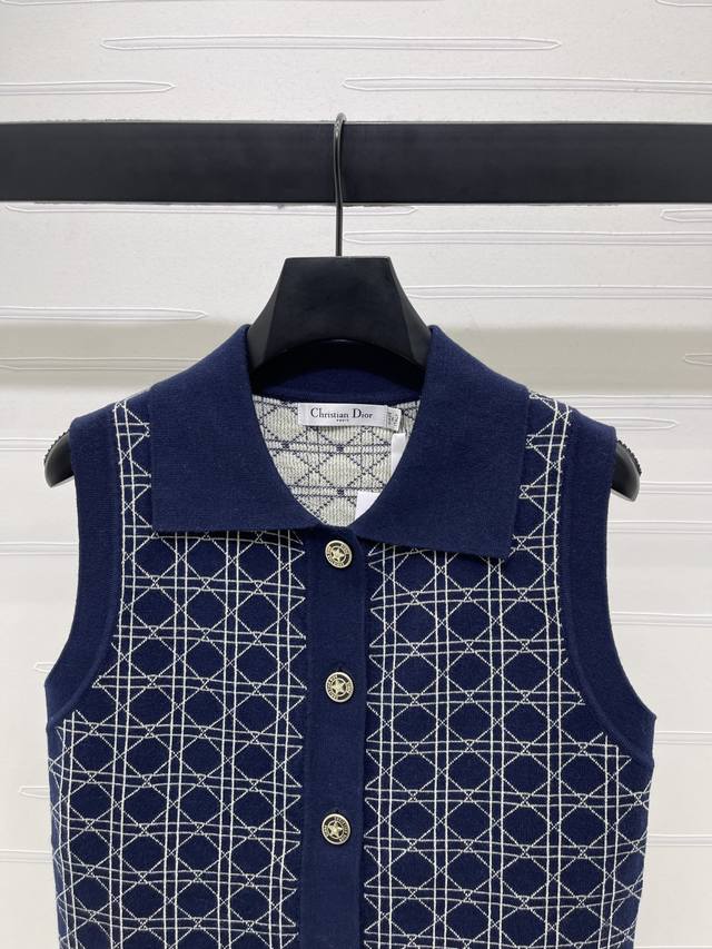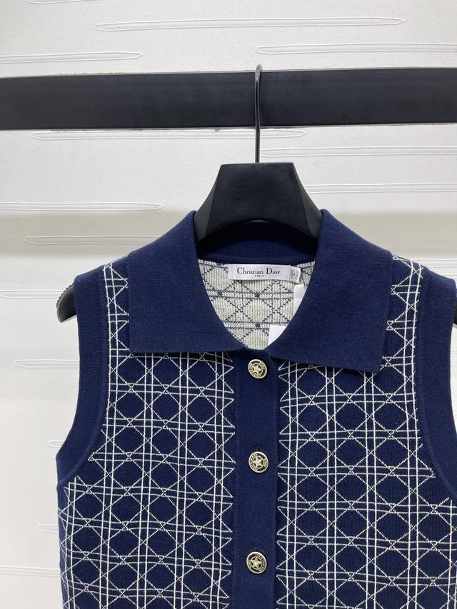New, original, high-end Dio* 2025 Early Fall collection! Lapel jacquard knit ve