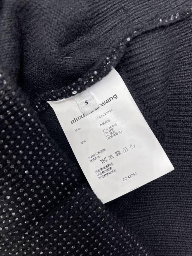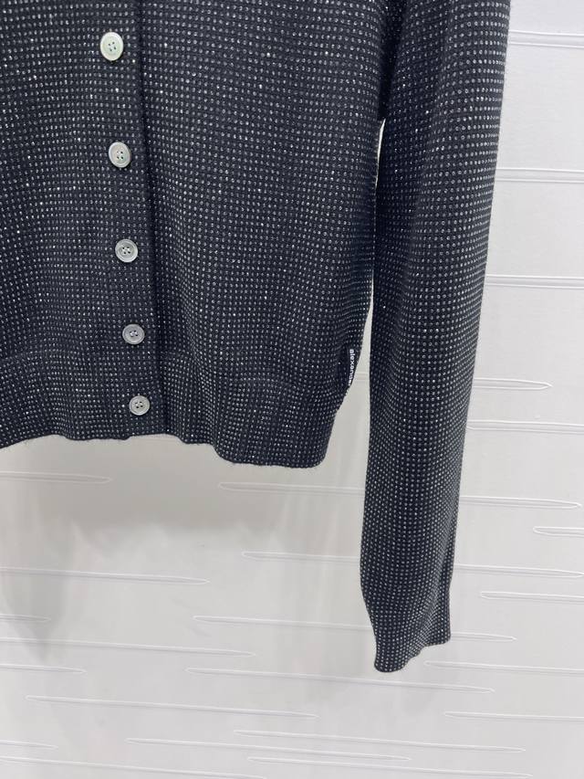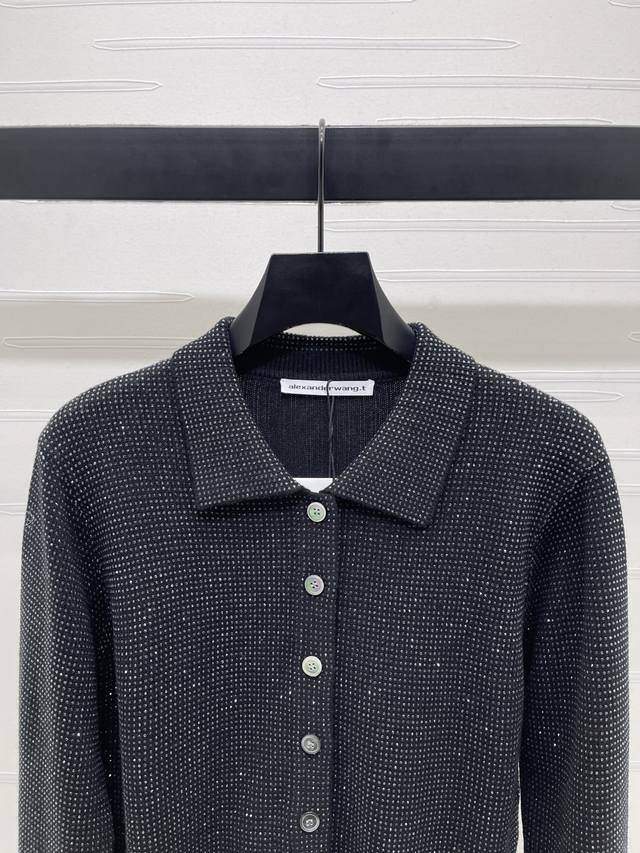 New, original, high-end quality, Alexander Wan* 2025 Early Fall Collection! Rhinestone lapel knitted cardigan! Custom-woven wool yarn for a premium, comfortable, soft, lapel, straight-shoulder cardigan with a fully paved rhinestone design. A dazzling, charming, and gentle silhouette. Elastic hems and lettered logo embellishments accentuate the high-end aesthetic. A regular fit for any body type and age, perfect for all seasons. Available in two colors! Sizes SM-L3! High-quality, bulky stock A706B600C