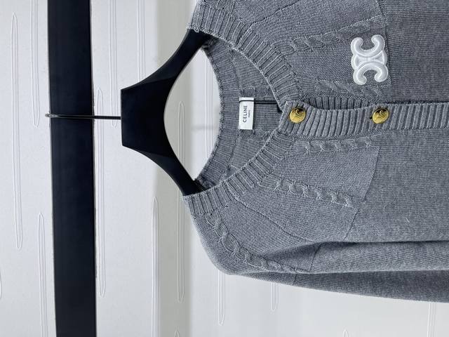 New, original, high-end quality Celin* 2025 Early Fall collection! Round-neck knitted long-sleeved cardigan! Custom-woven wool yarn for a soft, comfortable, stylish, and slimming look. The round-neck cardigan can be worn alone or as a layered jacket. The raglan shoulder silhouette outlines the lines, and the single row of gold round buttons on the front are exquisitely designed, rich in fashion and versatile. The iconic Arc de Triomphe logo on the chest showcases the brand's most distinctive style and elegance. The solid color of the large body is carefully crafted with ingenious details. The white color is gentle and artistic, and it looks relaxed and fashionable with any combination! 2 colors! Sizes SM-L3! High-quality bulk A706B410C