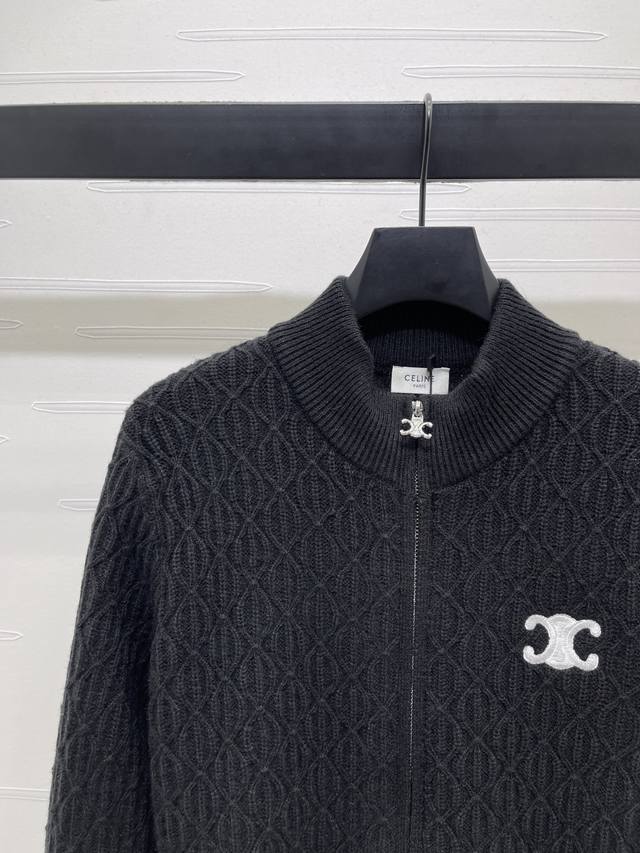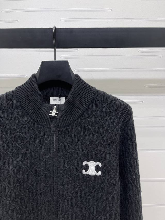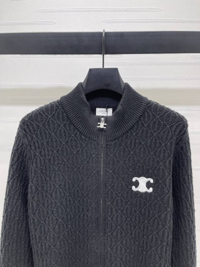 New, original, high-end quality Celin* 2025 Early Fall collection! Stand-up collar knitted long-sleeved cardigan! Crochet stand-up collar long-sleeved cardigan! Custom wool yarn woven for a premium, comfortable, and soft texture. Stand-up collar knitted cardigan with a silky cut. Adjustable zipper for easy dressing. The well-organized woven texture throughout. The embroidered Arc de Triomphe logo on the chest. The details are perfect for highlighting the high-end positioning and fashionable tone. It looks relaxed and stylish with any style! 3 colors! Sizes SM-L3! High-quality bulk stock A706B360C