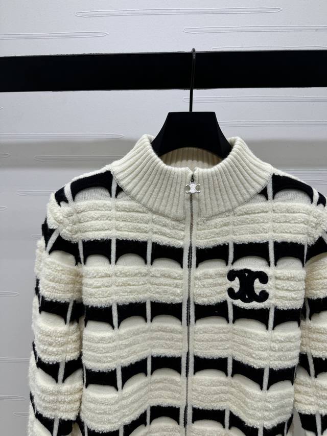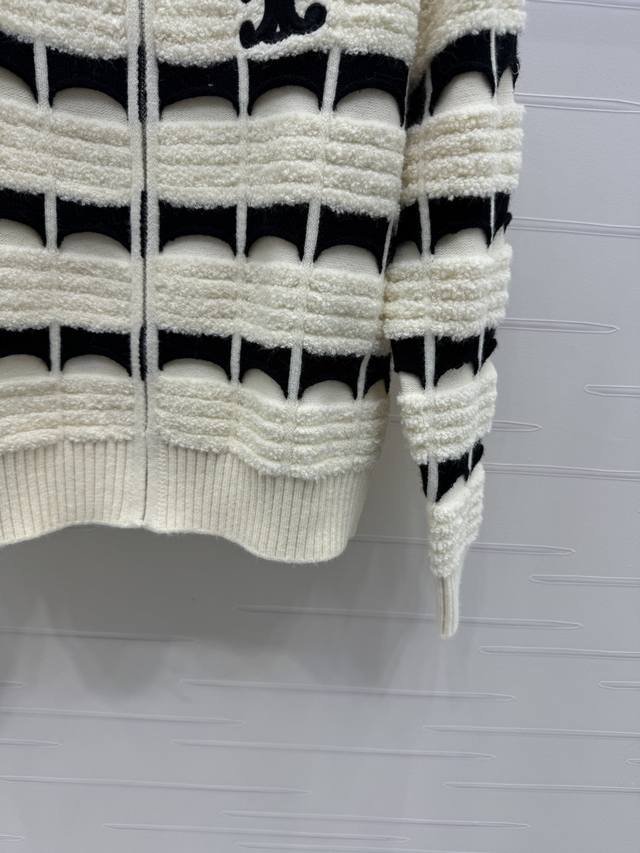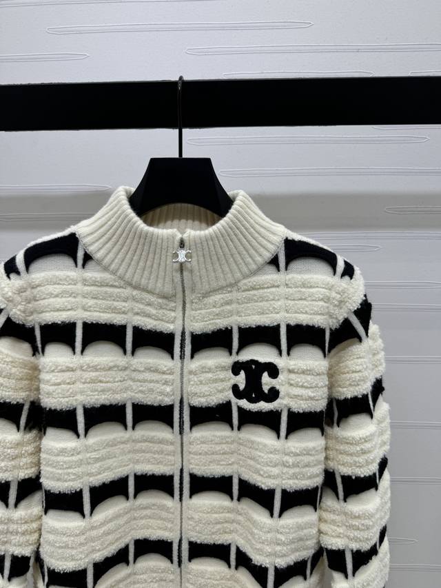 New, original, high-end quality Celin* 2025 Early Fall collection! Stand-up collar knitted long-sleeved cardigan! Custom wool yarn, soft, comfortable, stylish, and slimming. The stand-up collar cardigan has a silky cut and adjustable zipper for easy dressing. Elastic threaded hems at the sleeves, neckline, and hem provide a snug fit and increased warmth. The iconic Arc de Triomphe logo on the chest showcases the brand's signature elegance and luxurious style. The solid color scheme continues with meticulous attention to detail, creating a relaxed, stylish look with any style. Available in 2 colors! Sizes SM-L3! High-quality, bulky stock A706B360C