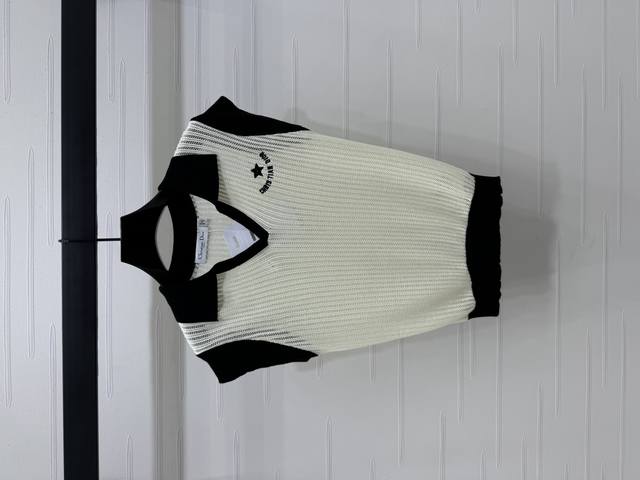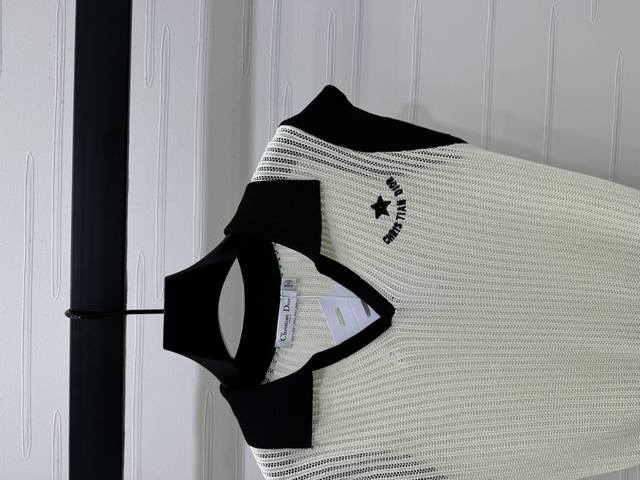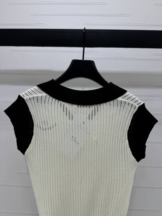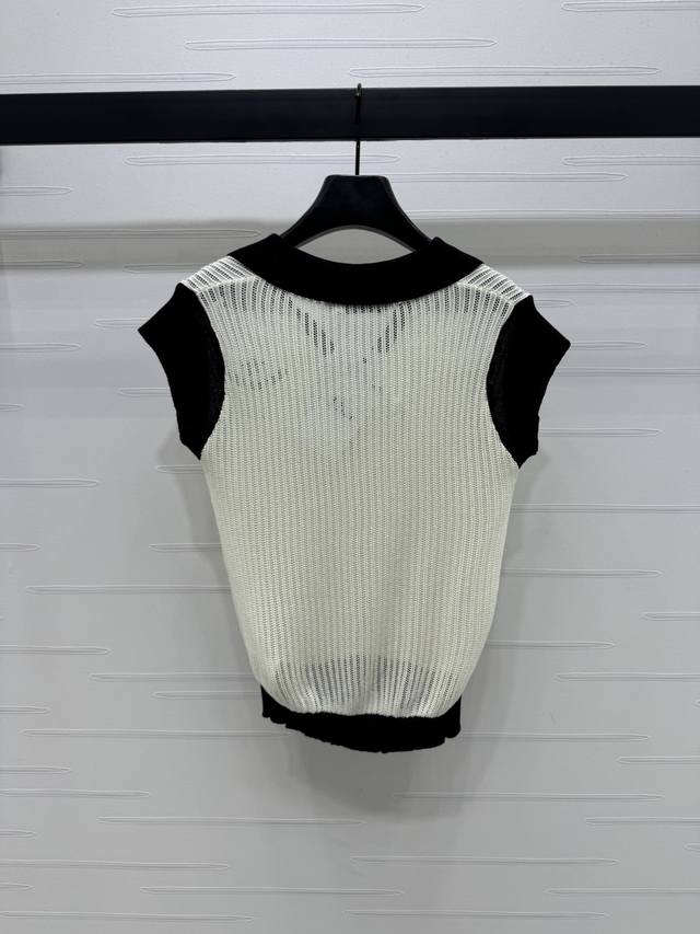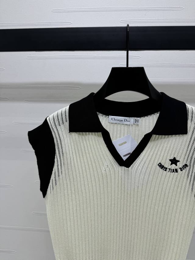 New original high-end quality Dio* 2025 early autumn latest series! Lapel knitted vest! Custom imported yarn weaving delicate and soft elastic exquisite lapel vest version half open V-neck design collar edge cuffs contrast color outline outline details full score basic style with large body hollow texture fresh and light iconic letter logo embroidered on the chest makes the retro college style strong age reduction and relaxation daily casual control! 2 colors! SM-L3 size! High quality bulk A706B310C