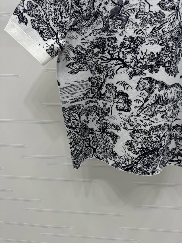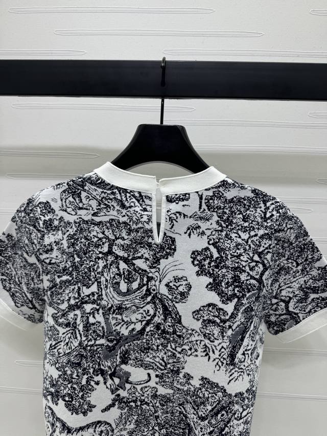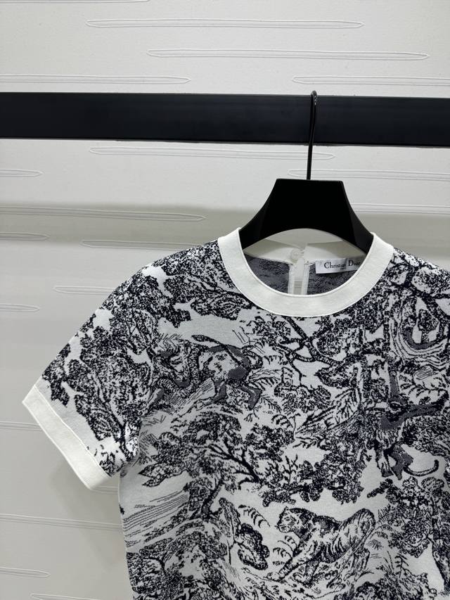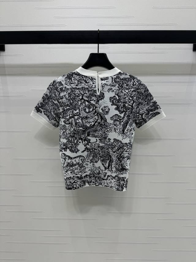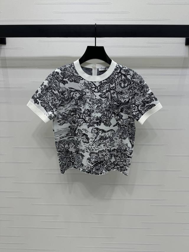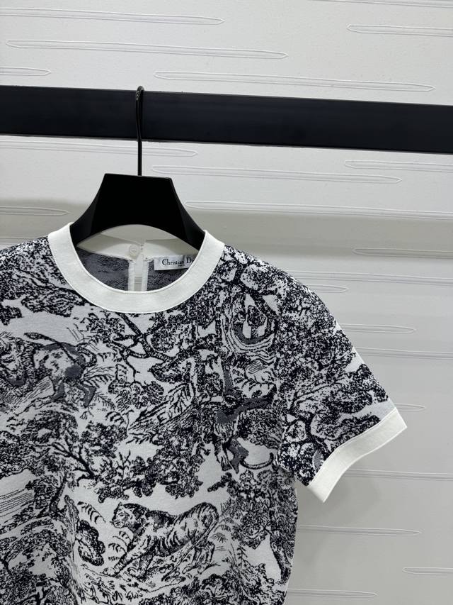 New original high-end quality Dio* 2025 early autumn new series! Jacquard knitted short sleeves! Customized cotton nylon yarn weaving texture is obvious and full of quality. Round neck knitted short sleeves are cut with two-color natural jungle flora and fauna patterns all over the body. The collision with the off-white hem of the cuffs and neckline makes the visual effect richer. The back collar is hollowed out and the waist side embroidery craftsmanship depicts the letter logo. The level is obvious and the style is obvious. It is a must-have for daily commuting and dating in the wardrobe. Let the elegance and calmness continue forever! 3 colors! SM- L3 size! High-quality large goods A706B300C