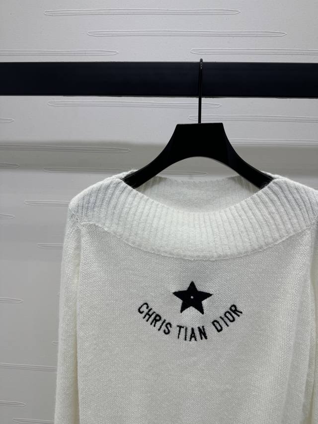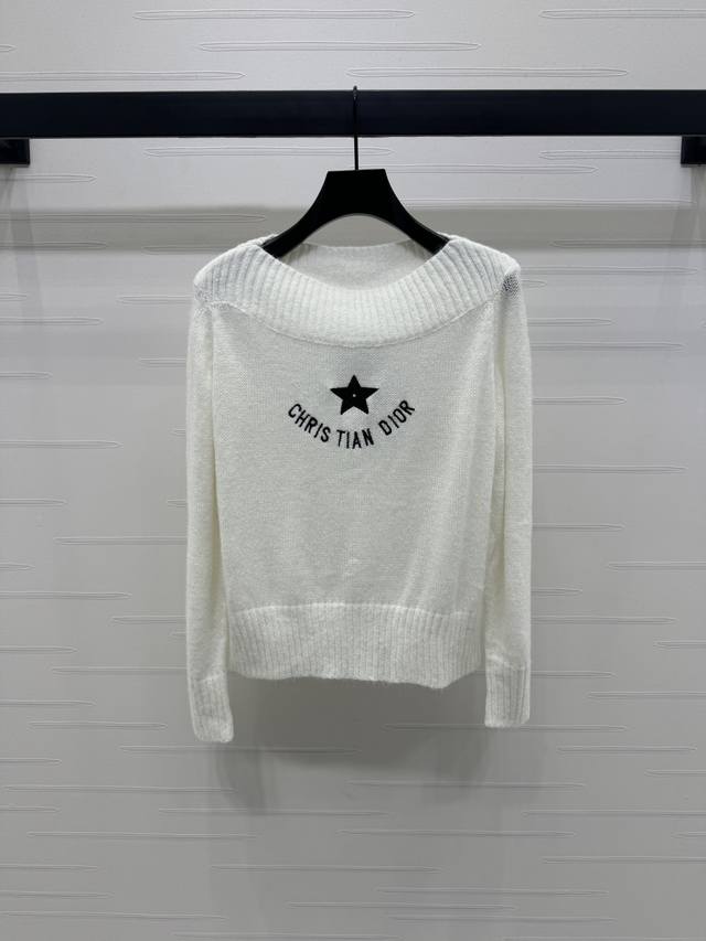 New original high-end quality Dio* 2025 early autumn new series! Ribbed collar knitted long-sleeved sweater! Custom imported wool blended yarn weaving texture high-end comfortable soft ribbed collar long-sleeved sweater tailoring dense knitting cold and windproof collar cuffs wide ribbed edging echoes the hem of the five-pointed star embroidery pattern on the chest to decorate the brand ribbon logo below to echo it, highlighting the high-end positioning and fashion tone! 2 colors! SM-L3 size! High-quality bulk A706B390C
