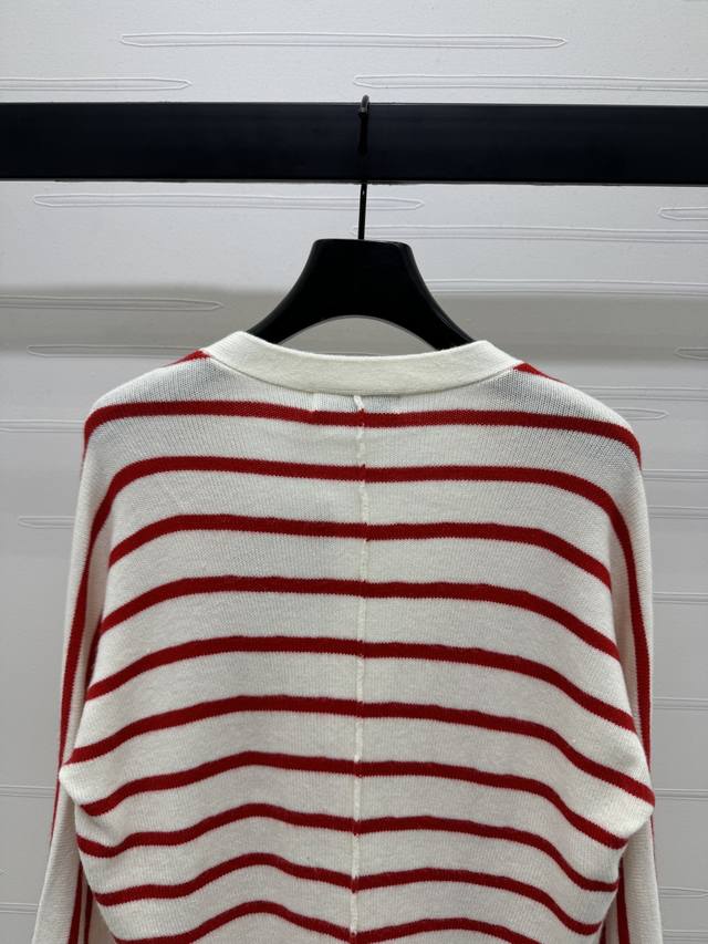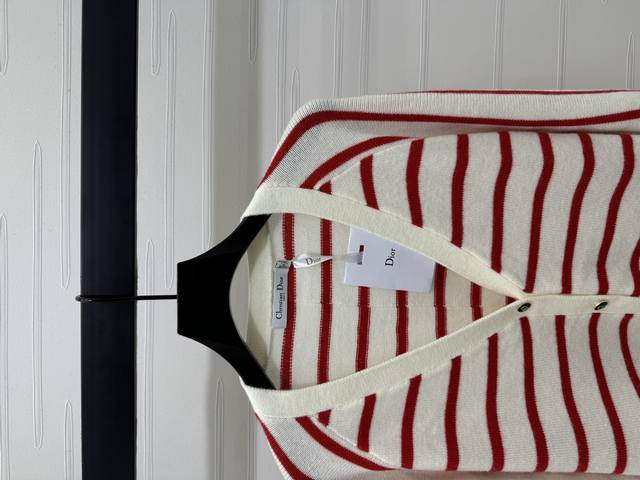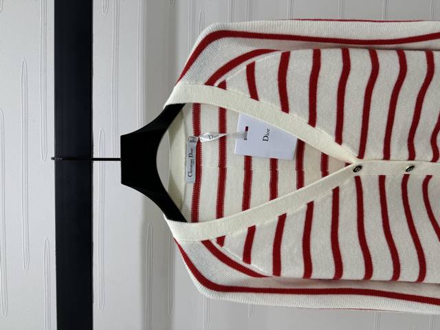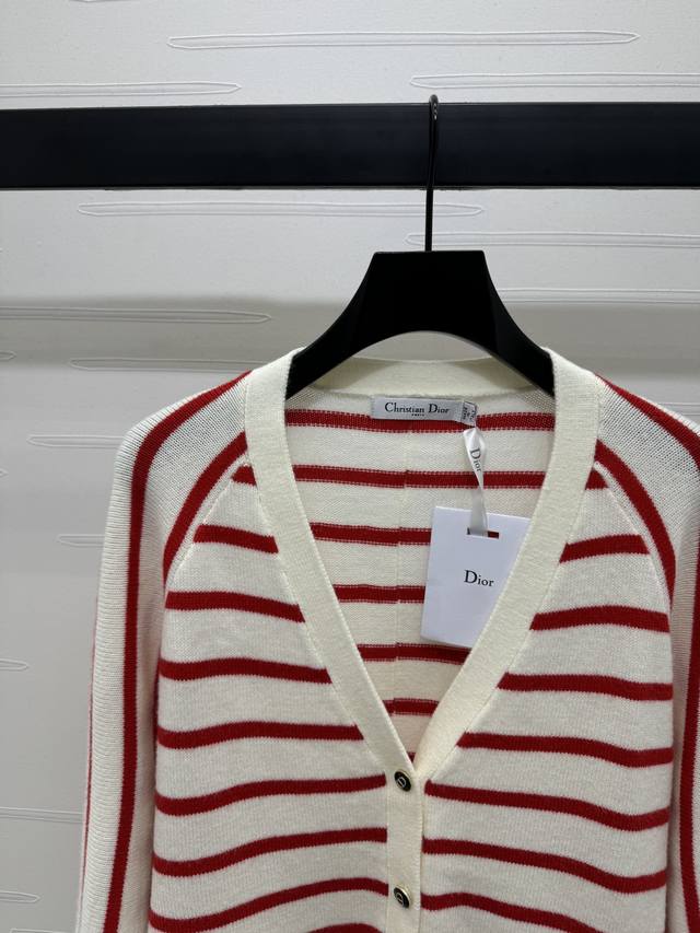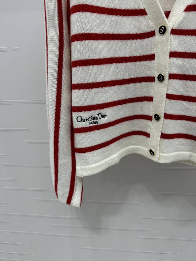 New original high-end quality Dio* 2025 early autumn new series! Vp collar striped long-sleeved cardigan! Custom imported wool yarn weaving delicate texture soft and comfortable V-neck long-sleeved cardigan cut regular version to wear fashionable temperament slim and inclusive figure stripes all over the chest and waist letter logo decoration to show brand tone full of personality! 2 colors! SM-L3 size! High quality bulk A706B330C
