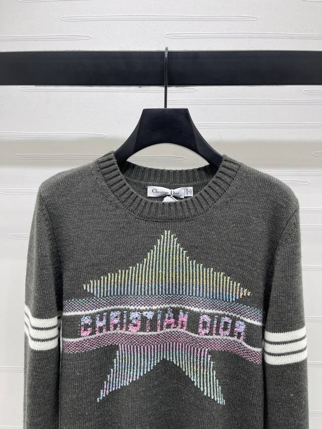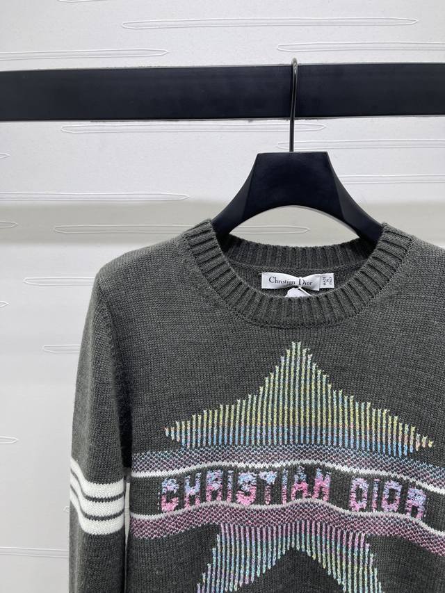 New, original, high-end quality, Dio* 2025 Early Fall Collection! Crew-neck knitted pullover sweater! Custom-woven wool yarn for a premium, comfortable, and soft look. The round neck, long-sleeved sweater features a dense knit with ribbed details for added warmth and windproofing. Wide, ribbed cuffs match the hem, while the chest bar is embellished with a crochet five-pointed star pattern, highlighting the brand's signature style. Straight-shoulder style, regular fit, simple, versatile, and stylish for everyday wear in fall and winter! Available in two colors! Sizes SM-L3! High-quality, large-volume stock