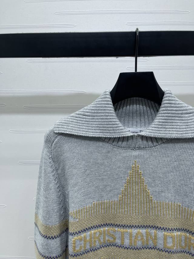 New, original, high-end quality, Dio* 2025 Early Fall Collection! Lapel knitted pullover sweater! Custom wool yarn woven for a premium, comfortable, and soft feel. Long-sleeved, lapel sweater with a dense knit and ribbed details for added warmth and windproofing. Wide, ribbed cuffs match the hem, while the chest bar is embellished with a crochet five-pointed star pattern, highlighting the brand's signature style. Straight-shoulder style, regular fit, simple, versatile, and stylish for everyday wear in fall and winter! Available in 3 colors! Sizes SM-L3! High-quality, large-volume stock