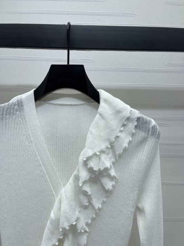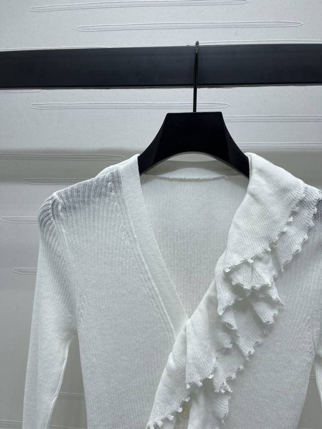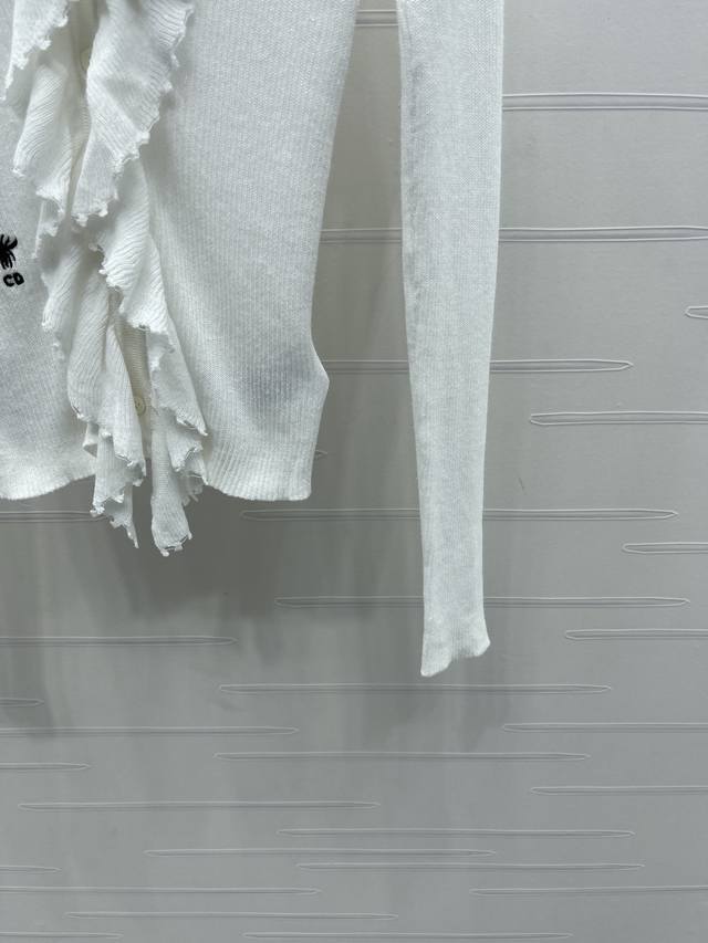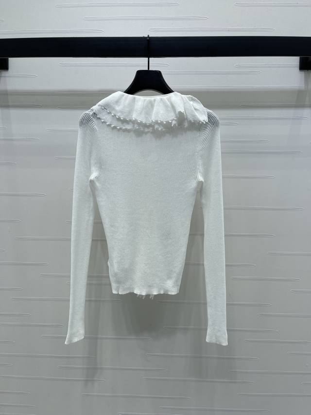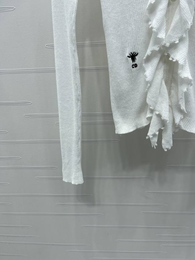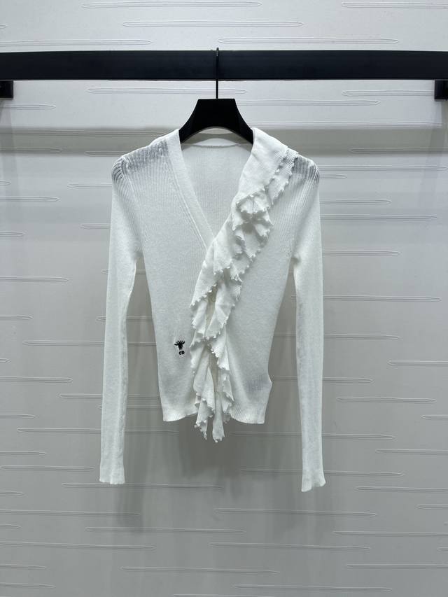 New, original, high-end quality, Dio* 2025 Early Fall Collection! Long-sleeved, wood ear lace knit! Custom-woven from imported YB yarn for a premium, comfortable, and soft texture. The sweetheart neckline knit long-sleeved design is lightweight and slightly sheer, accented with wood ear lace edging for a subtle, textured finish. The Cd bee embroidered logo on the hem adds a touch of elegance and style, creating a relaxed and versatile look! 2 colors! Sizes SM-L3! High-quality, bulk stock A706B400C