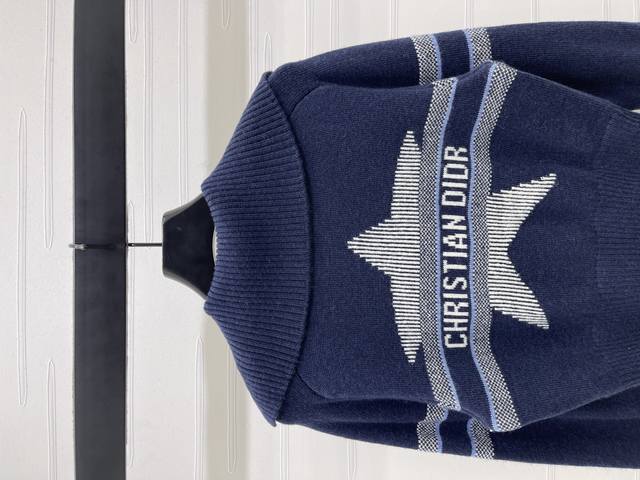 New, original, high-end quality, Dio* 2025 Early Fall Collection! Skiing five-pointed star lettered knitted cardigan! Custom wool knit material, comfortable, breathable, and crisp, the large lapel sweater cardigan is windproof and warm-resistant. Lines divide the shoulders and arms to define the shape. The large horizontal stripes run through the front and back, and the crochet lettering and five-pointed star pattern add vitality to the overall shape, brightening the brand design. Whether it's daily travel or leisure entertainment, it will highlight the fashion and personality of the latest ski collection! 2 colors! Sizes SM-L3! High-quality bulk A706B370C
