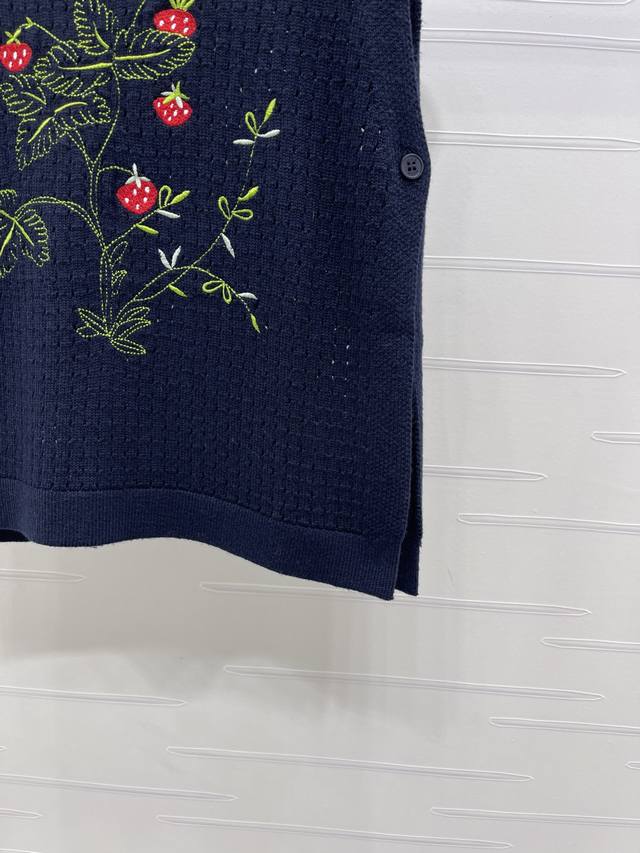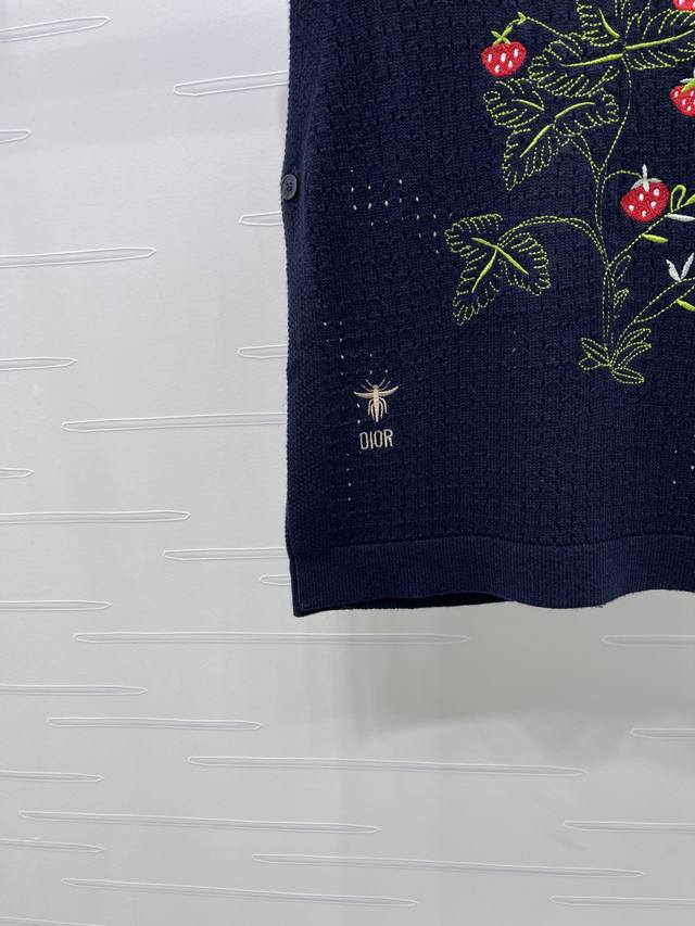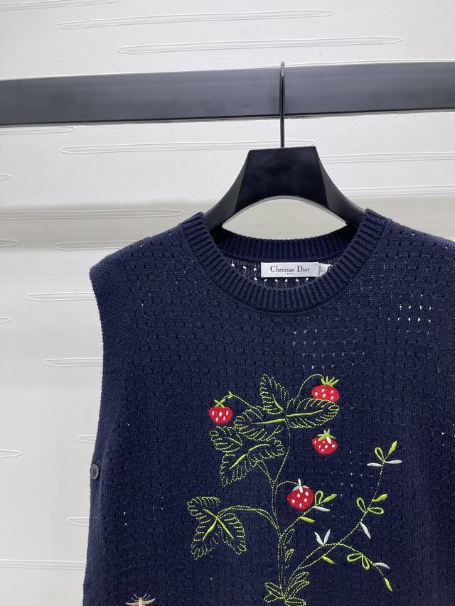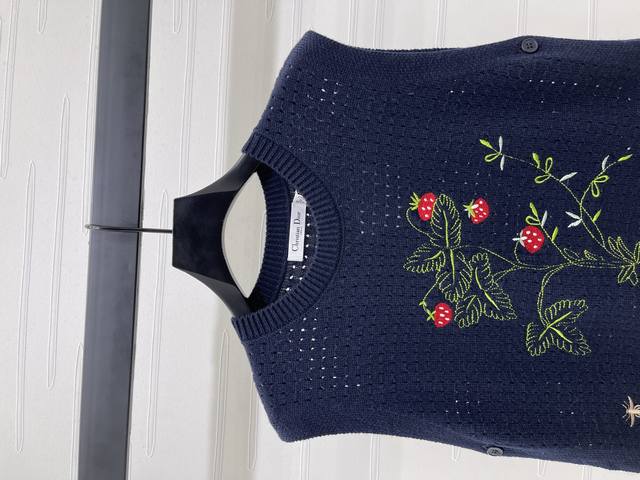 New, original, high-end quality, Dio* 2025 Early Fall Collection! Strawberry-patterned knitted vest with back! Custom Yb wool yarn for premium comfort. The knitted vest features a wide shoulder silhouette with chest embroidery that creates a strawberry effect. The bee CD logo accentuates the look, creating a versatile and sophisticated look. The two cape-style front and back pieces can be worn in various ways to enhance your personality and create a rich visual effect, exuding a luxurious and stylish look. Available in two colors! Sizes SM-L3! High-quality, large-volume stock