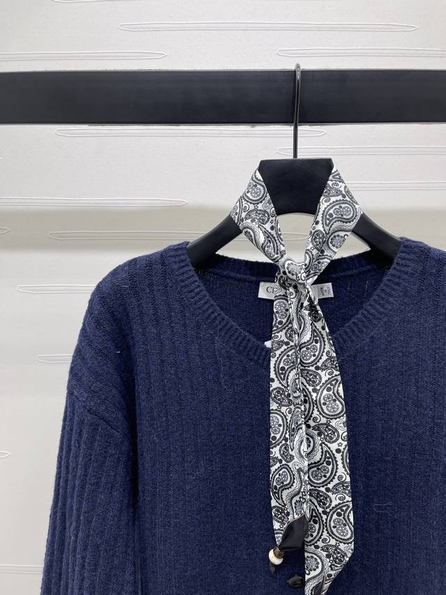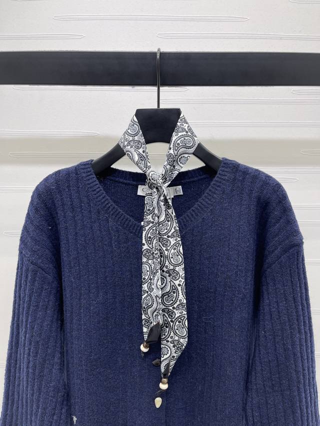 New, original, high-end quality, Dio* 2025 Early Fall Collection! Sweetheart-neck knitted cardigan! Woven from custom wool yarn, this soft, comfortable, and textured round-neck knitted long-sleeved cardigan features a sweetheart neckline that reveals just the right amount of skin, flattering the head-to-shoulder ratio and creating a slimming effect. The top creates a relaxed, relaxed look, with vertical stripes along the hem and ruffled hem accents. A silk scarf tie accents the neckline for a more relaxed and elegant look. The bee CD logo on the waist accentuates the brand's style, creating a sophisticated and youthful look. Available in two colors! Sizes SM-L3! High-quality, large-volume