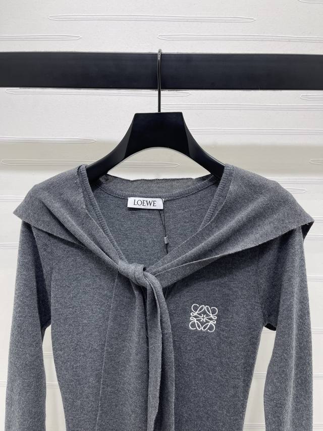 New, original, high-end quality, Loew* 2025 Early Fall Collection! Shawl V-neck long-sleeved dress! Custom-woven from imported yarn, this comfortable, stretchy V-neck long-sleeved dress features a tie-neck collar. The two-piece shawl can be detached and worn alone, enhancing skin coverage and contouring the neckline for a slimmer look. The solid-colored base and embroidered totem logo on the chest enhance the refined look, highlighting the sophistication of the outfit. The elasticity enhances refinement, creating a slimming, relaxed look. This light, luxurious, and fashionable dress can be worn alone or layered, making it a top choice for all-season fashion! Available in two colors! Sizes SM-L3! High-quality, bulky stock A706B460C