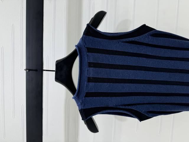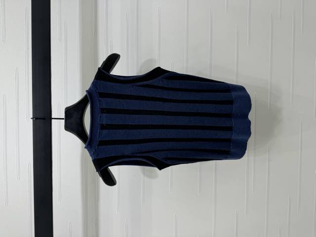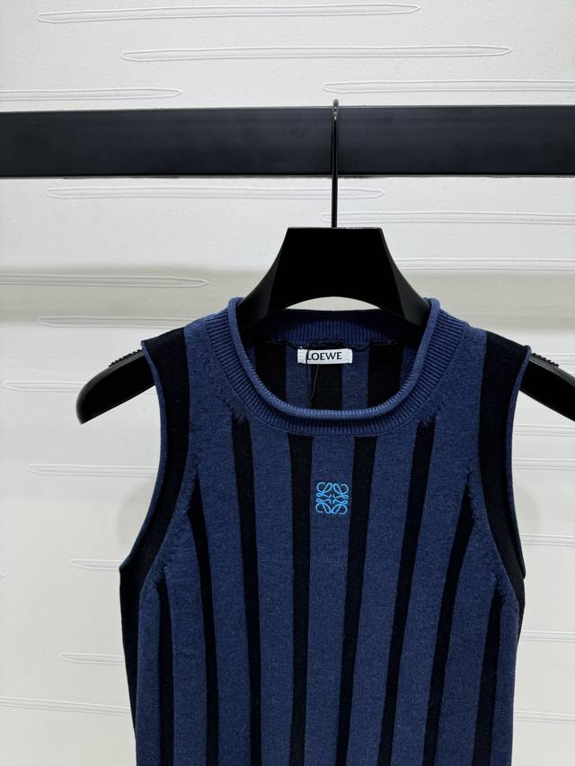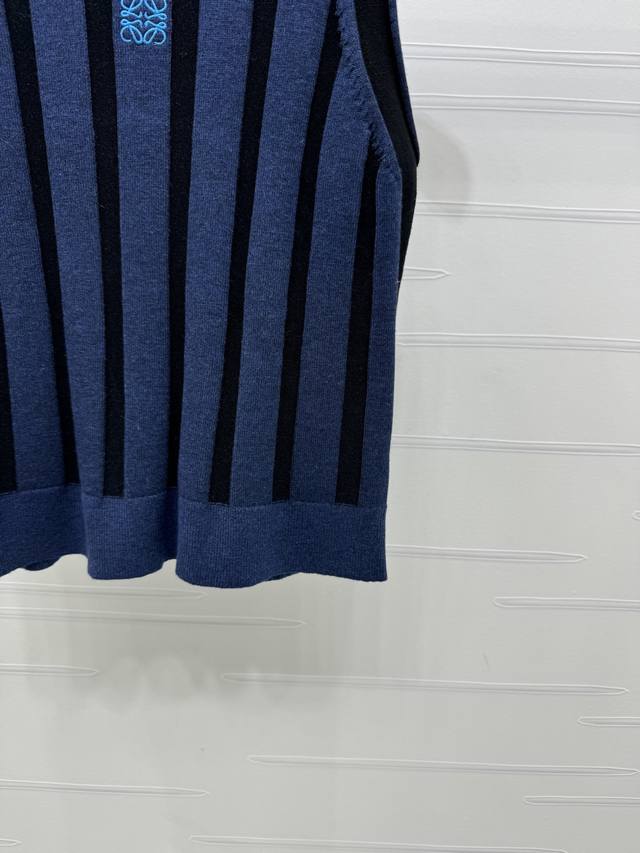 New original high-end quality Loew*2025 Spring and Summer latest series! Contrast color totem embroidery knitted vest! Custom imported wool blended yarn woven delicate texture soft and comfortable round neck knitted vest cut all over vertical stripes contrast color stitching collar cuffs threaded hem show brand tone slim fit full of elasticity! 1 color! SM-L3 size! High quality bulk A706B270C