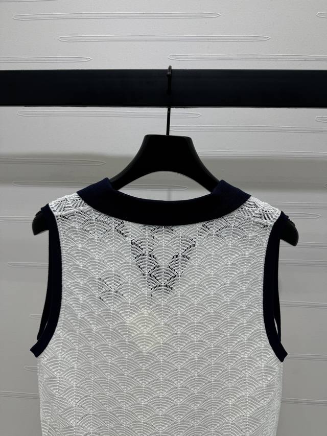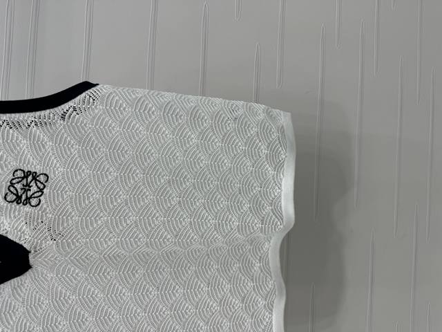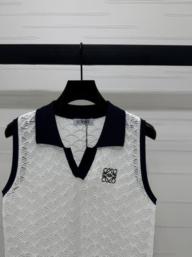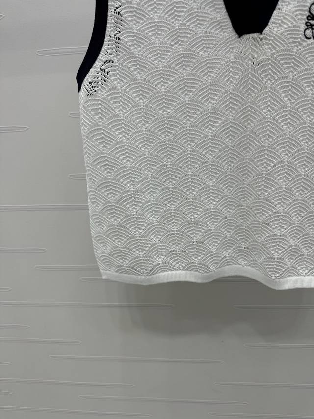 New original high-end quality Loew*2025 Spring and Summer latest series! Lapel knitted vest! Custom imported yarn weaving delicate and soft elastic exquisite lapel vest version half open V-neck design collar edge cuffs outline the contour line with contrasting colors full of details basic style with large body hollow texture fresh and light iconic totem logo embroidered on the chest makes the retro college style strong age reduction and relaxation daily casual control! 2 colors! SM-L3 size! High quality large goods A706B320C