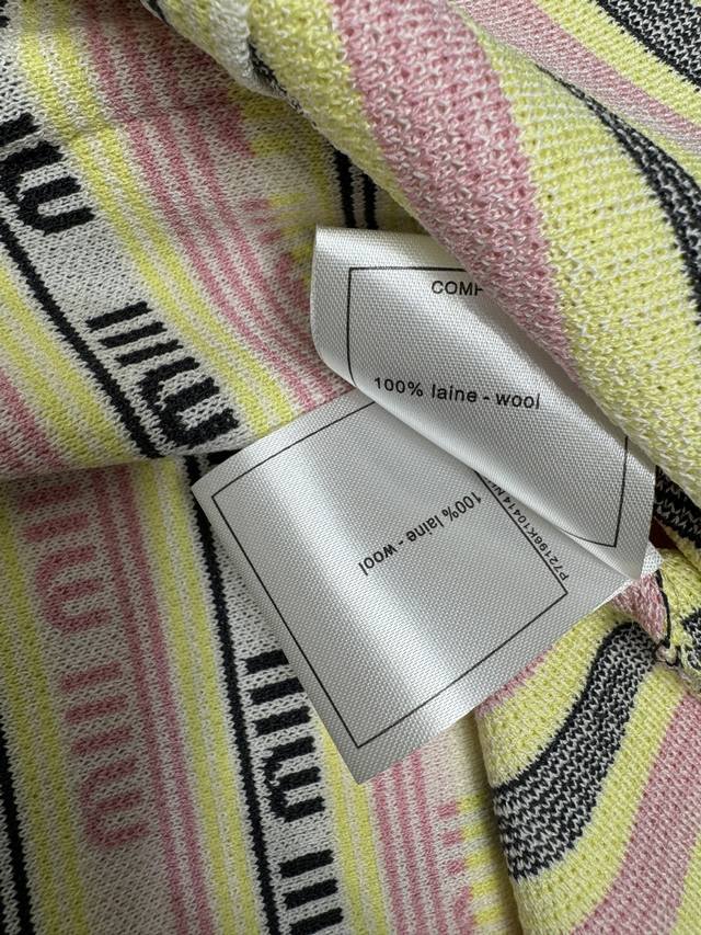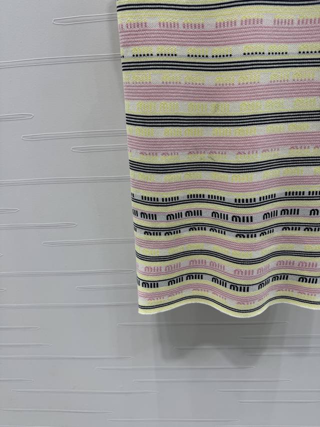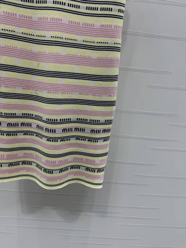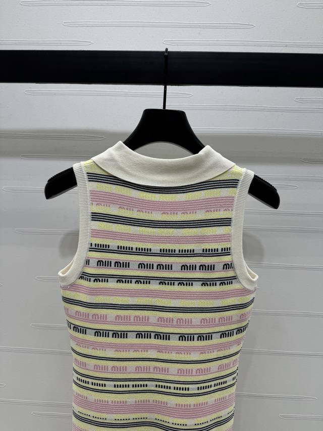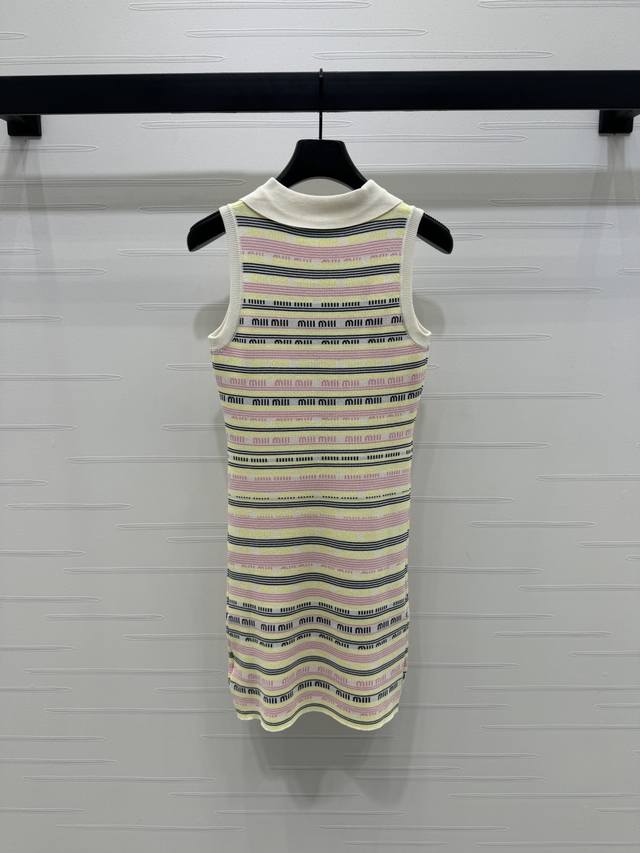 New original high-end quality Miumi*2025 spring and summer latest series! Striped lapel knitted back skirt! Custom wool yarn weaving comfortable soft elastic lapel knitted vest skirt cut all over the body contrast stripes with letter logo design details make it more high street fashion atmosphere ready-made clothing uses dense weaving technology delicate texture to add exquisiteness to simple wear easily show playful girl style slim fit slim and fashionable! 2 colors! SM-L3 size! High quality large goods A706B290C