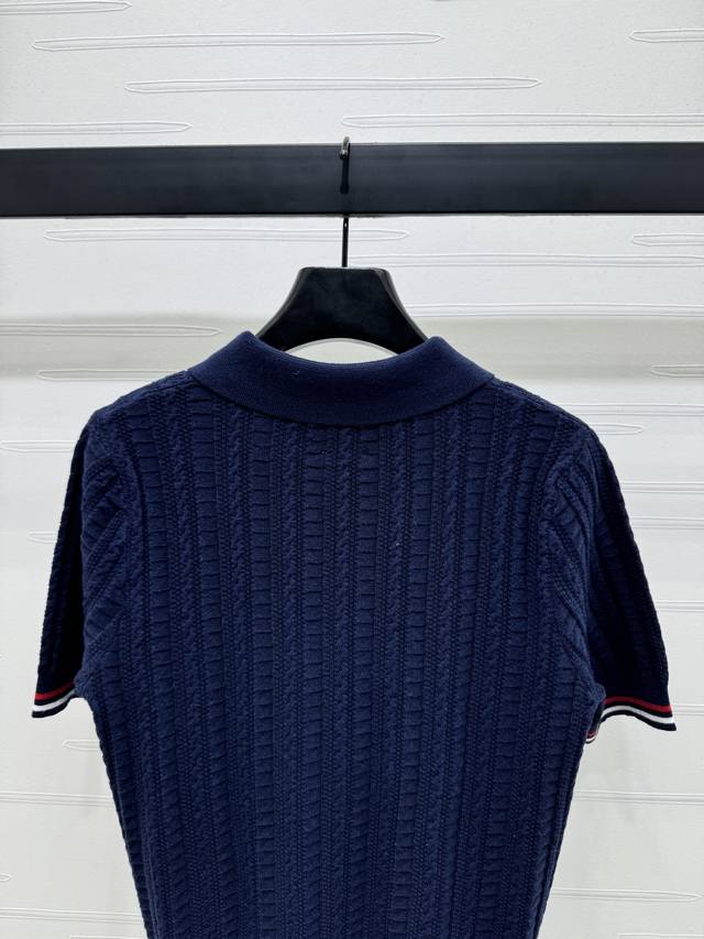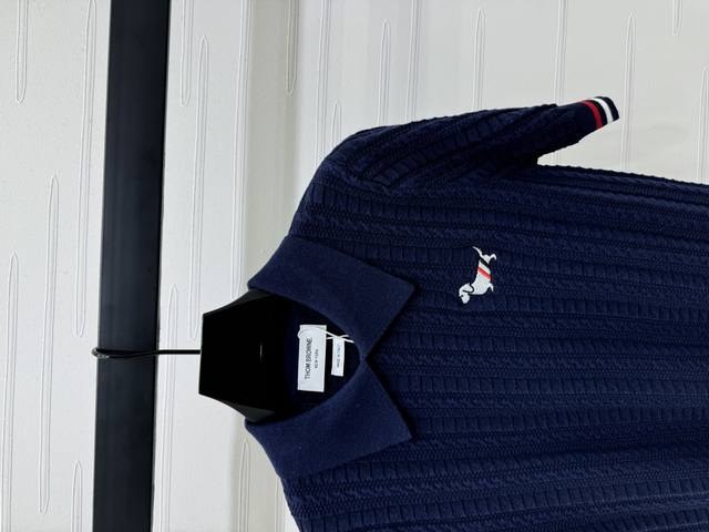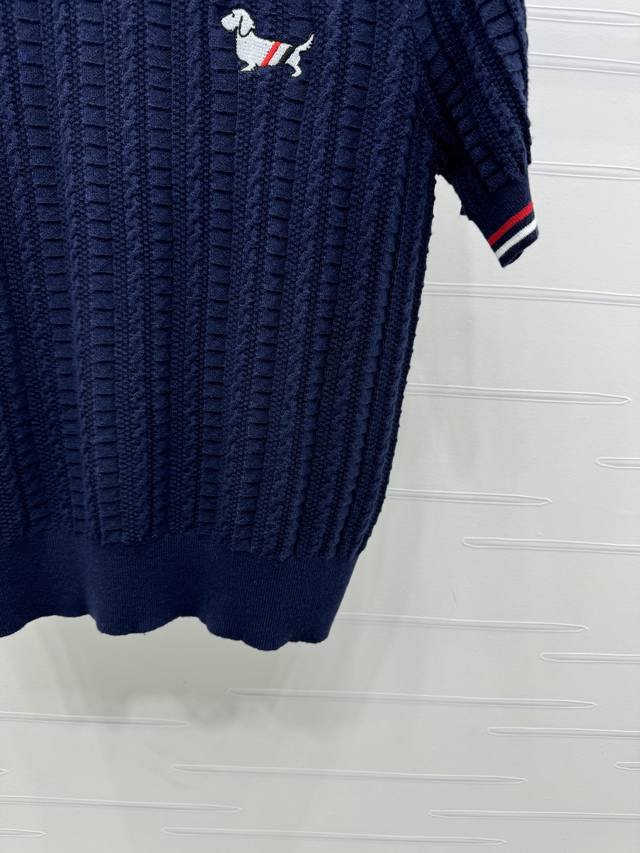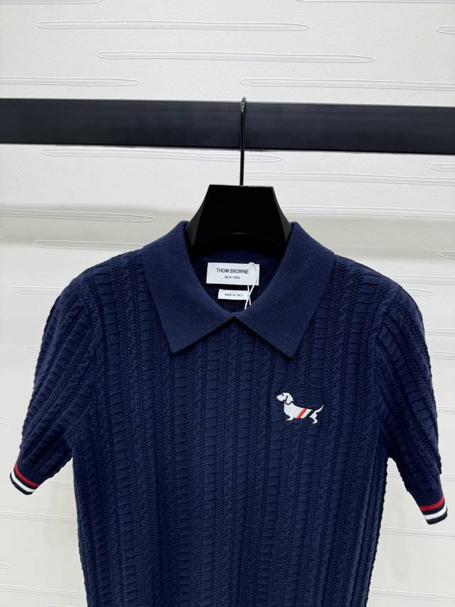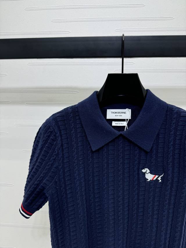 New original high-end quality Thom Brown* 2025 Spring and Summer latest series! Embroidered puppy lapel knitted short sleeves! Custom Yb imported blended yarn weaving texture high-end comfortable full body pit texture design playful and cute college style cute puppy embroidery, contrasting stripes cuffs, collar and hem threaded edges, highlighting the brand's high-end texture! 2 colors! SM-L3 size! High-quality bulk A706B320C