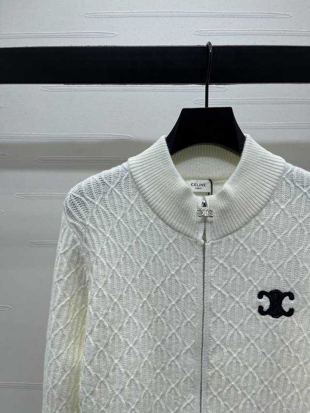 New, original, high-quality Celin* 2025 Early Fall collection! Stand-up collar knitted long-sleeved cardigan! Crochet stand-up collar long-sleeved cardigan! Custom wool yarn woven for a premium, comfortable, and soft texture. The stand-up collar knitted cardigan has a silky cut, adjustable zippers for easy dressing, and a well-organized woven texture throughout. The Arc de Triomphe logo embroidered on the chest highlights the high-end positioning and fashionable tone. It looks relaxed and stylish with any style! 3 colors! Sizes SM-L3! High-quality bulk stock A706B360C
