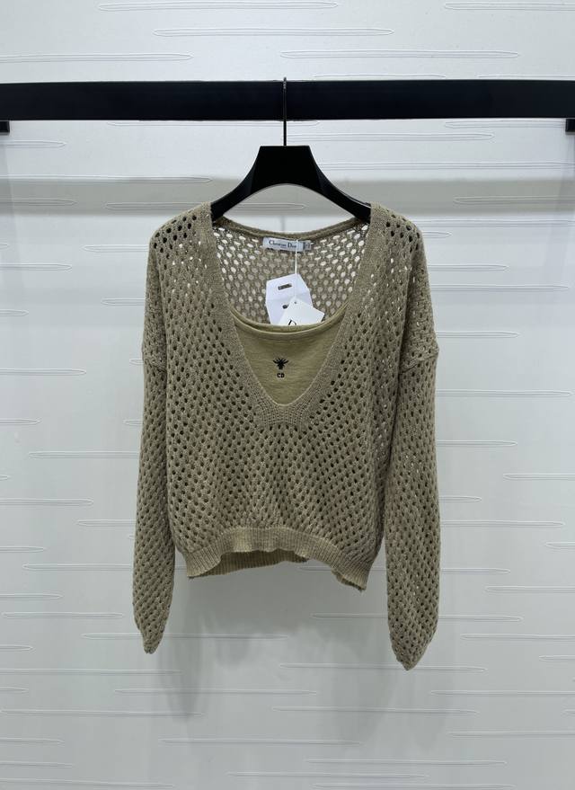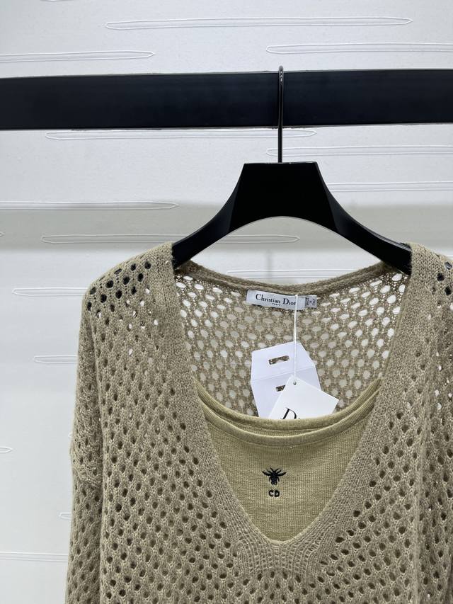 New, original, high-quality Dio* 2025 Early Fall collection! A two-piece deep V-neck hollowed-out cardigan and vest set! Custom-made imported knit fabric with a comfortable, breathable hollowed-out texture. The transparent hollowed-out design brightens the look and showcases the brand's high-end aesthetic. The regular fit is slimming and stretchy, making it an elegant and sexy addition to any outfit! Available in two colors! Sizes SM-L3! High-quality, bulky stock A706B360C