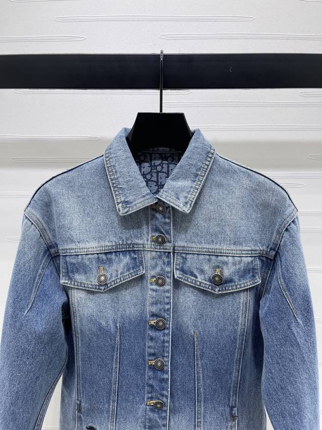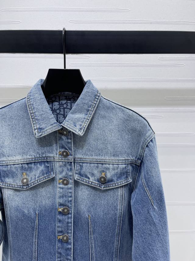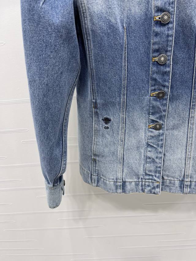 New, original, high-quality Dio* 2025 Early Fall collection! Oversized denim jacket! Custom-made cotton twill denim with multiple washes for a crisp texture. Lapel, straight shoulders, and tailored flap pockets complement the essential silhouette. High-quality, all-over blue and gray denim base with a natural bleached effect. The interior is covered with monogram prints and a retro, natural bee embroidered logo, highlighting the brand's style. The loose, mid-length silhouette creates a neutral, stylish style. The leather label enhances the brand's premium design! Available in one color! Sizes SM-L3! High-quality, bulky stock A706B520C