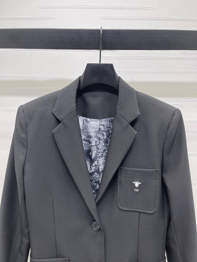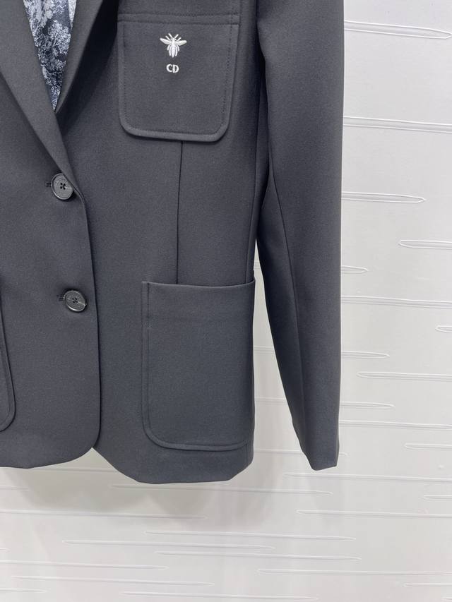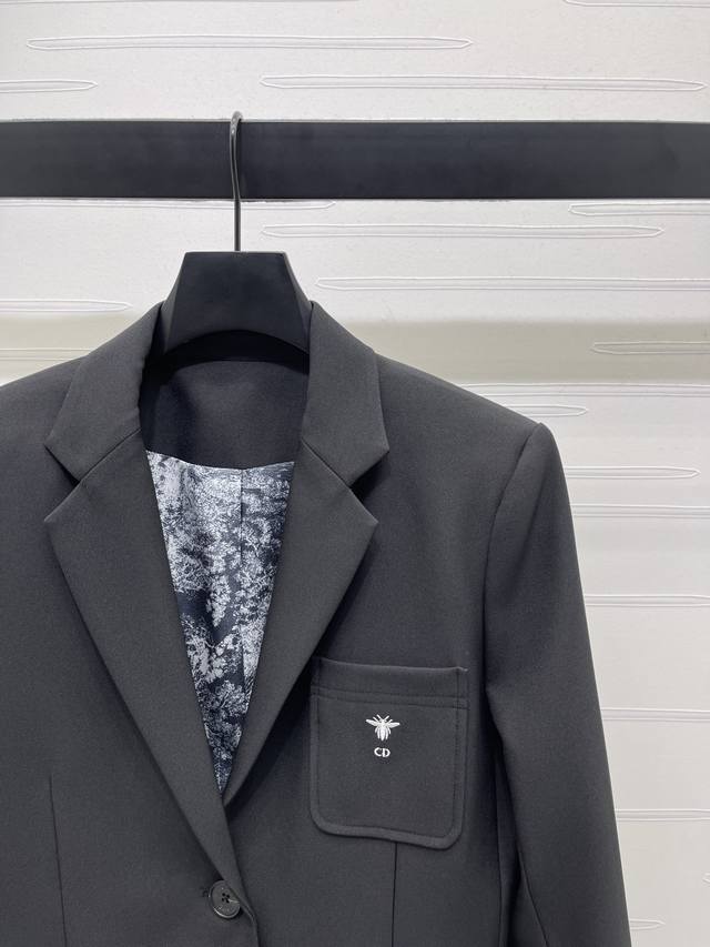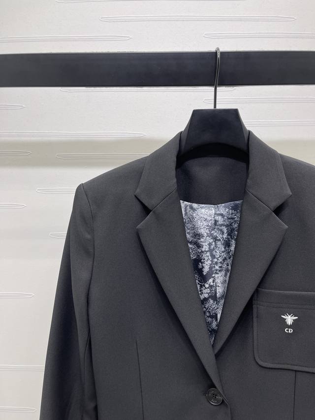 New, original, high-quality Dio* 2025 Early Fall Collection! Pocket-embroidered blazer! Custom-made from imported acetate, it boasts a premium, lustrous, and comfortable fit. Padded shoulders complement the blazer with a peaked lapel and a three-dimensional slit at the back waist, creating a flattering, relaxed silhouette. The lining features a simple, elegant jungle animal print that highlights the brand's style. The embroidered bee on the pocket creates a low-key, luxurious look. The oversized silhouette creates a relaxed feel and showcases sophisticated elegance! Available in one color! 3 sizes SM-L! High-quality, bulky stock A706B600C