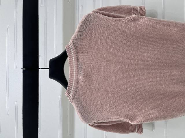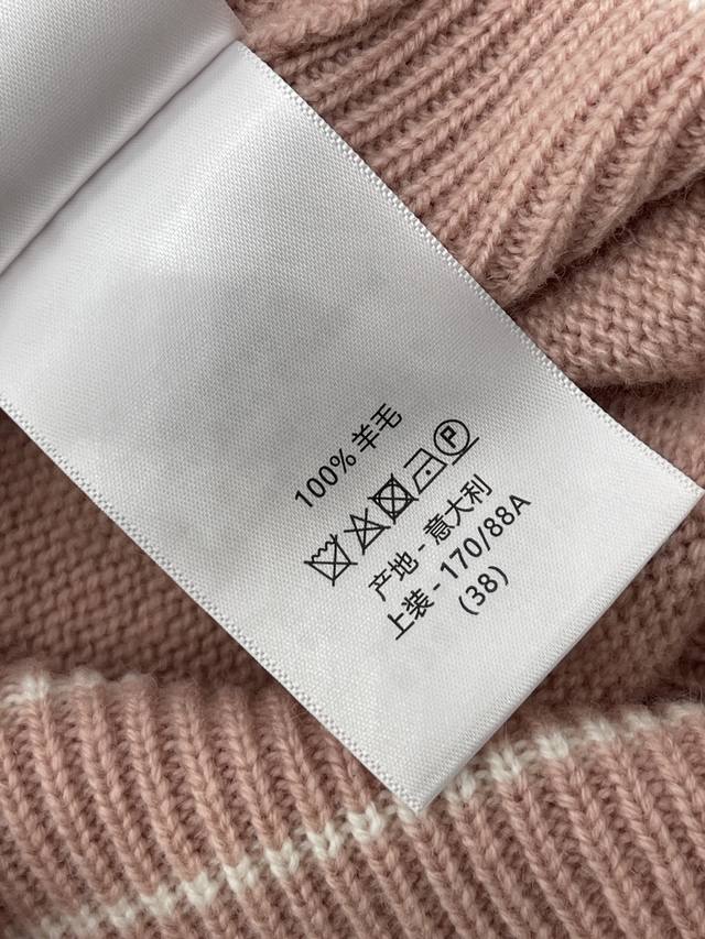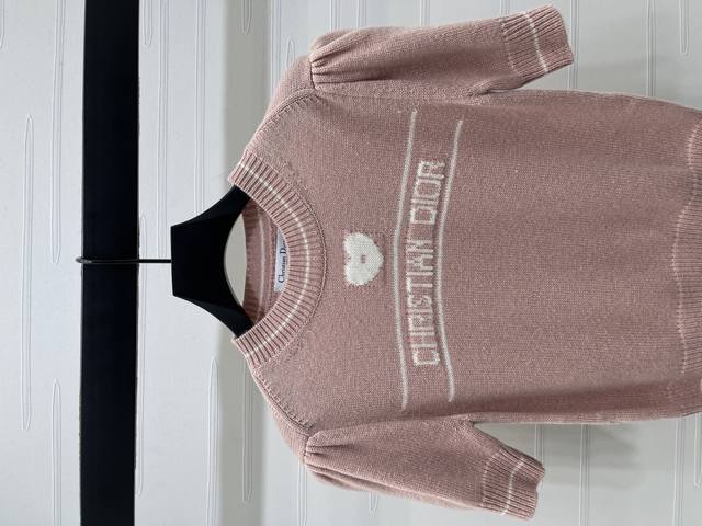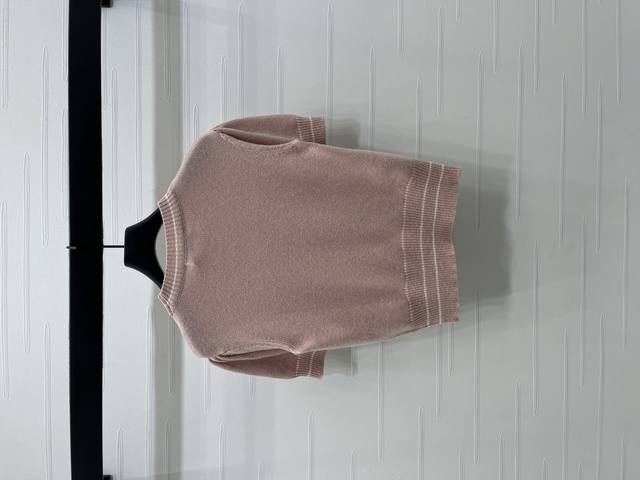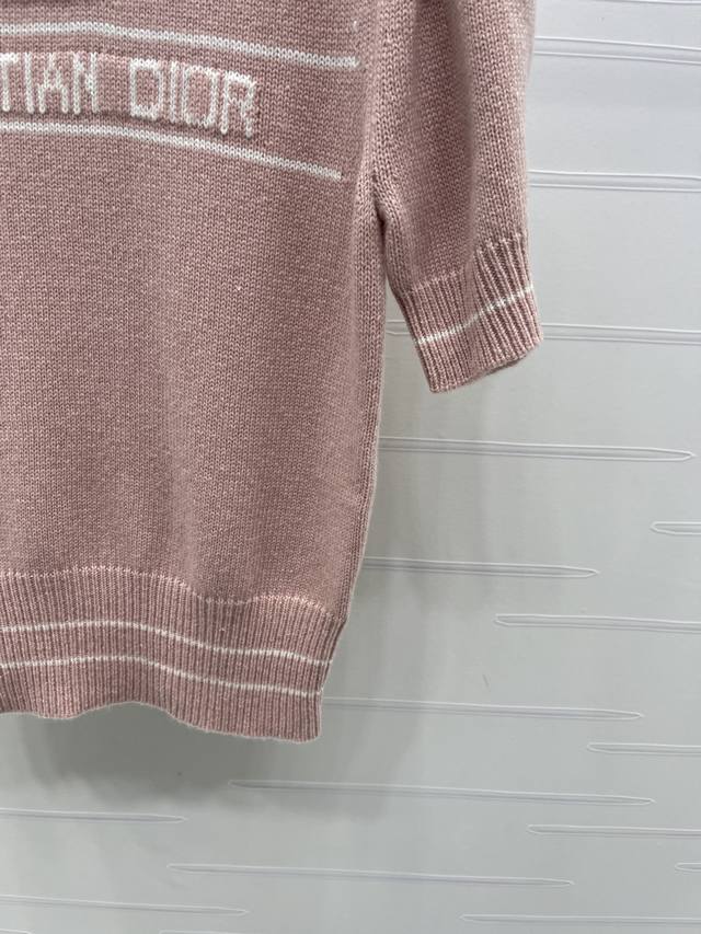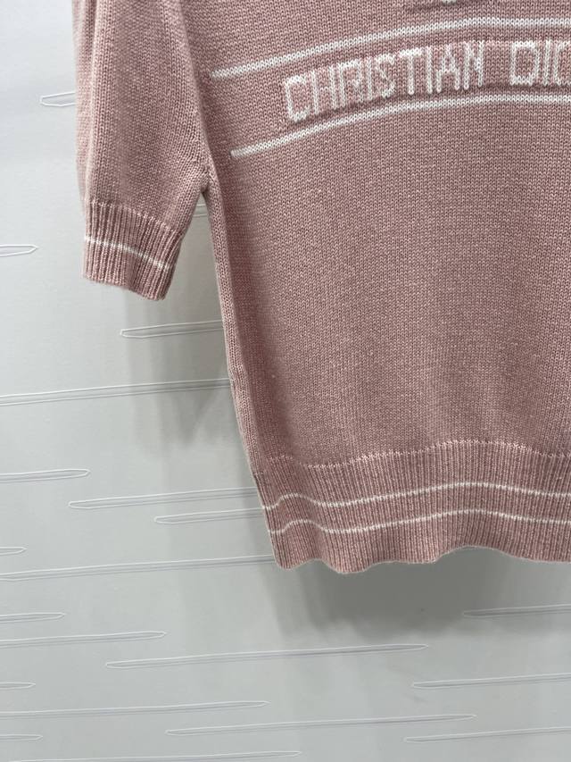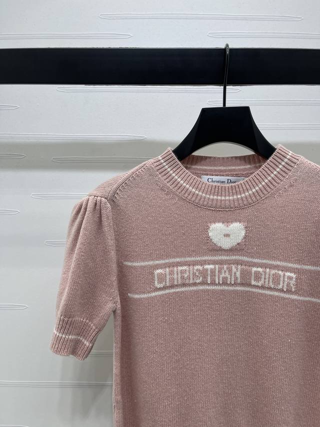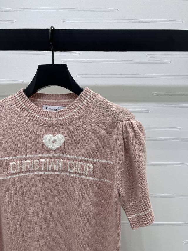New, original, high-quality Dio* 2025 Early Fall collection! Puff-sleeved heart-shaped jacquard knit short-sleeve top! Custom wool blend yarn woven for a soft texture. The jacquard pattern with horizontal stripes on the chest and the brand's monogram logo highlights its high-end positioning and fashionable tone. The straight-shoulder style and regular fit create a gentle and tranquil artistic atmosphere! 2 colors! Sizes SM-L3! High-quality bulk stock A706B300C