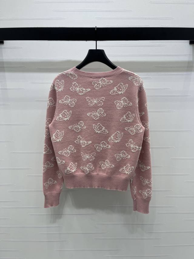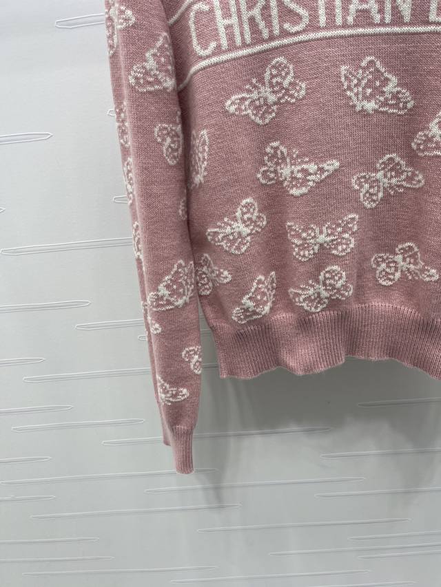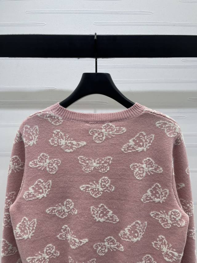 New, original, high-quality Dio* 2025 Early Fall collection! Round-neck jacquard butterfly knitted long-sleeved sweater! Custom-made, imported wool blend yarn, soft and comfortable, large jacquard pattern, with a micro-logo design embellished on the chest bar. The tailoring and details enhance the sophistication. Regular fit, stylish and elegant! Available in 3 colors! Sizes SM-L3! High-quality, large-volume