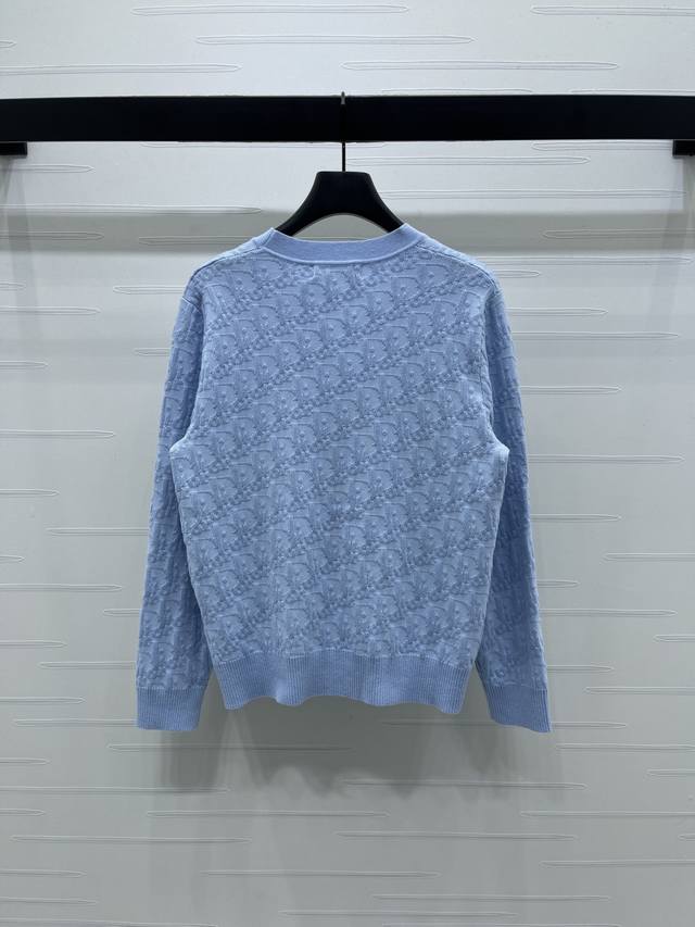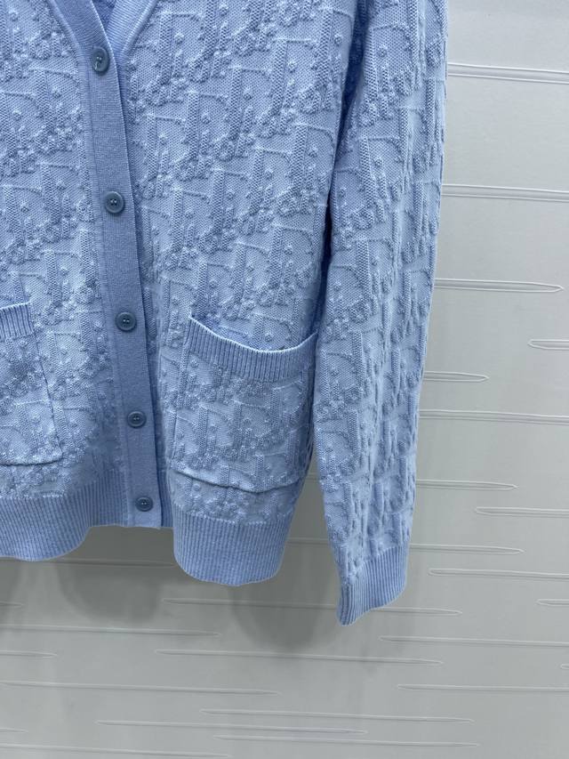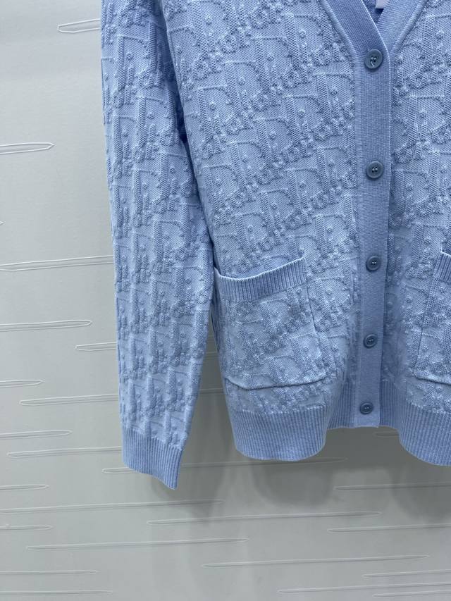 New, original, high-quality Dio* 2025 Early Fall Collection! V-neck knitted cardigan with monogram logo! Custom-made imported wool blend yarn for a premium, comfortable, soft texture. Contrast-colored threaded hems at the neckline and cuffs add a layered look. All-over monogram logo jacquard accents highlight the brand's signature double-pocket design. Loose fit for a versatile look! 3 colors! Sizes SM-L3! High-quality, bulky stock A706B350C