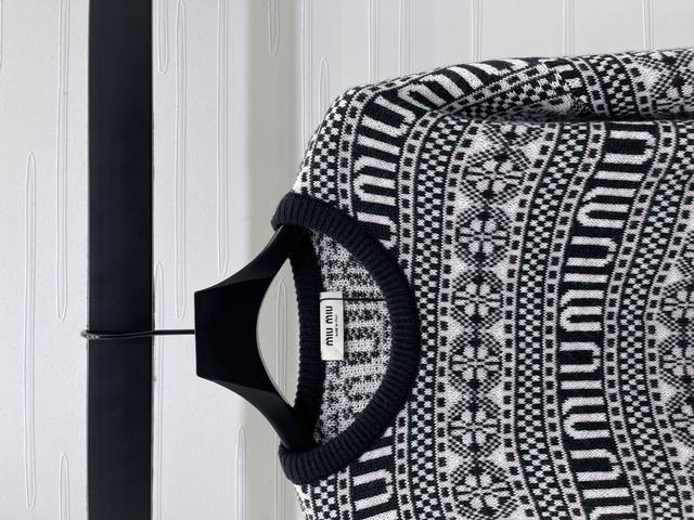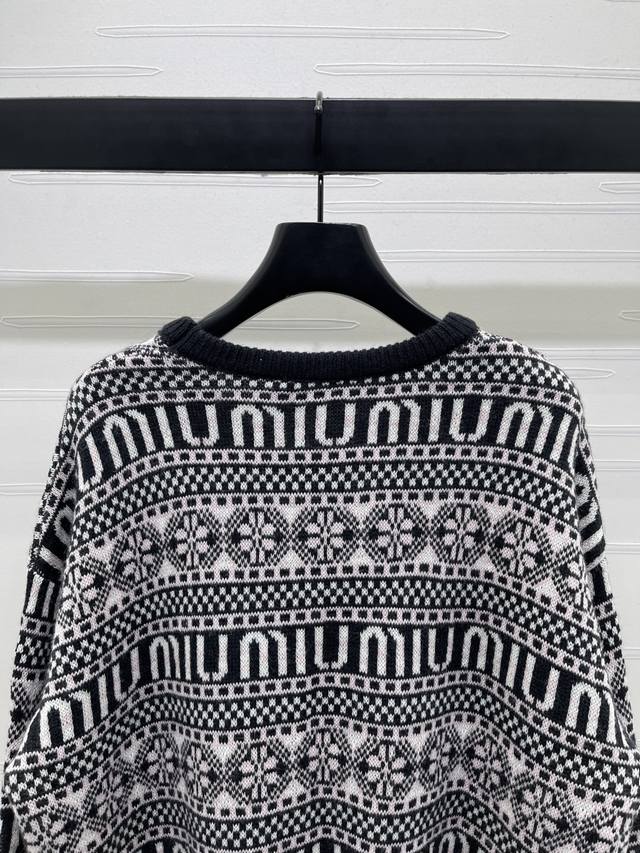 New, original, high-quality, Miumi* 2025 Early Fall Collection! Contrast-striped snowflake sweater! Custom-made wool knit, fine-density knit for a crisp, wooly feel. Comfortable, skin-friendly, and drop-shoulder, long-sleeved sweater with hemming and spiral stripes for a comfortable, elastic fit. Contrast-striped snowflake motifs add a touch of elegance and a stylish, sophisticated look. Available in two colors! Sizes SM-L3! High-quality, bulky stock. A706B390C