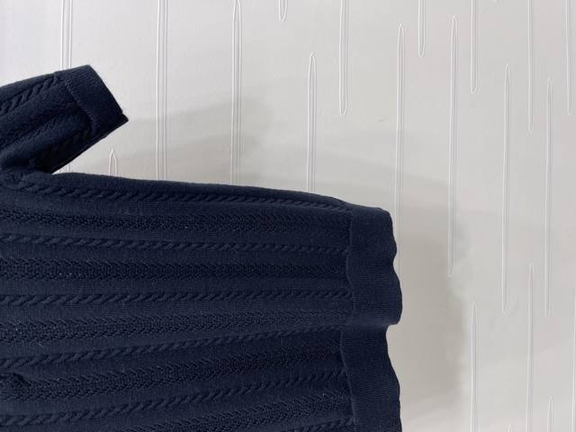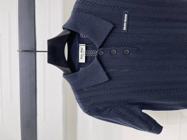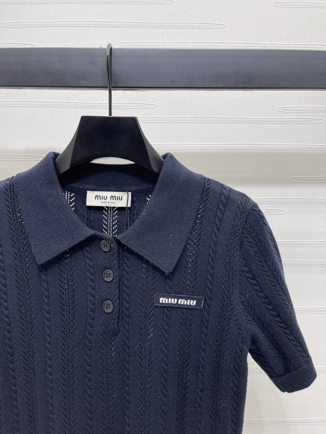 New, original, high-quality, Miumi* 2025 Early Fall collection! Hollow-knit lapel short-sleeve top! Custom-woven from imported wool blended yarn for a premium, stylish look. The knit lapel, half-open placket, short-sleeved top features a cut that utilizes hollow crochet stitches throughout, highlighting the premium feel. The threaded design at the neckline, cuffs, and hem creates a flattering, accommodating silhouette with a relaxed feel. The letter logo on the chest highlights the effortlessly stylish and luxurious look! Available in 3 colors! Sizes SM-L! High-quality, bulky stock available in 2 colors! Sizes SM-L! High-quality, bulky stock available in 310C