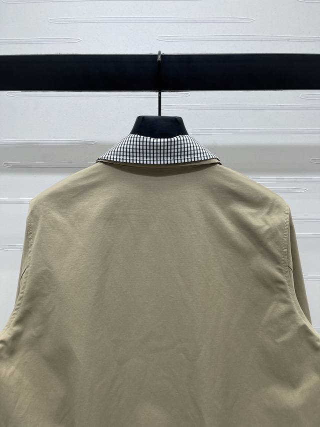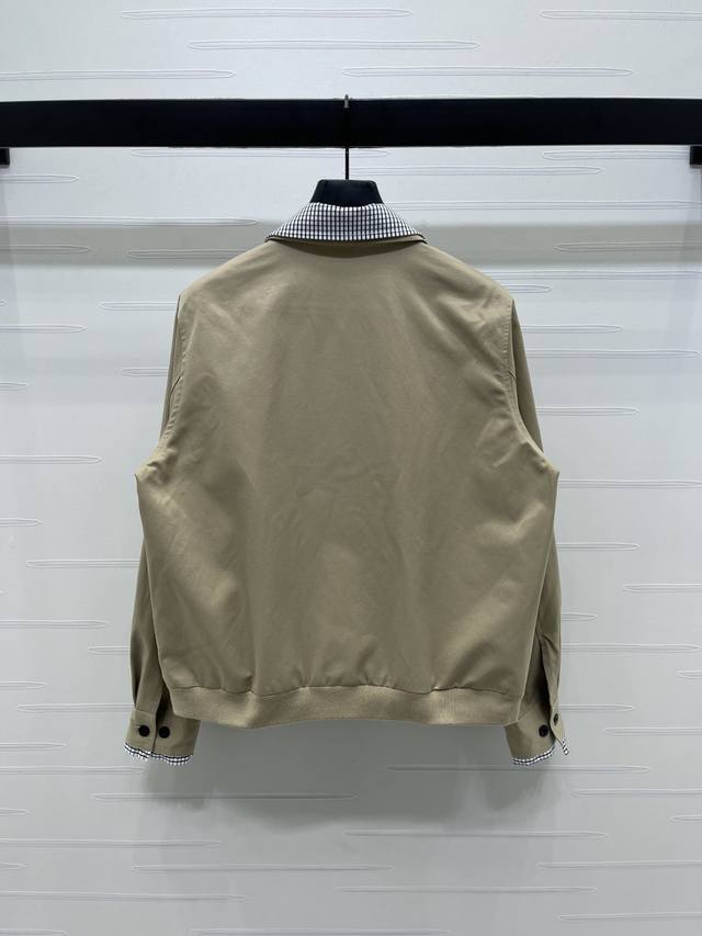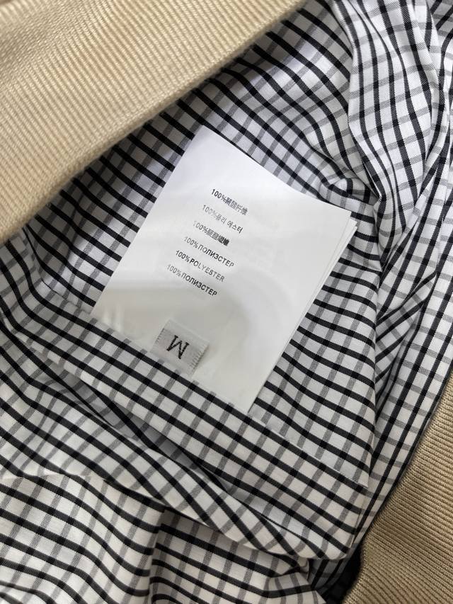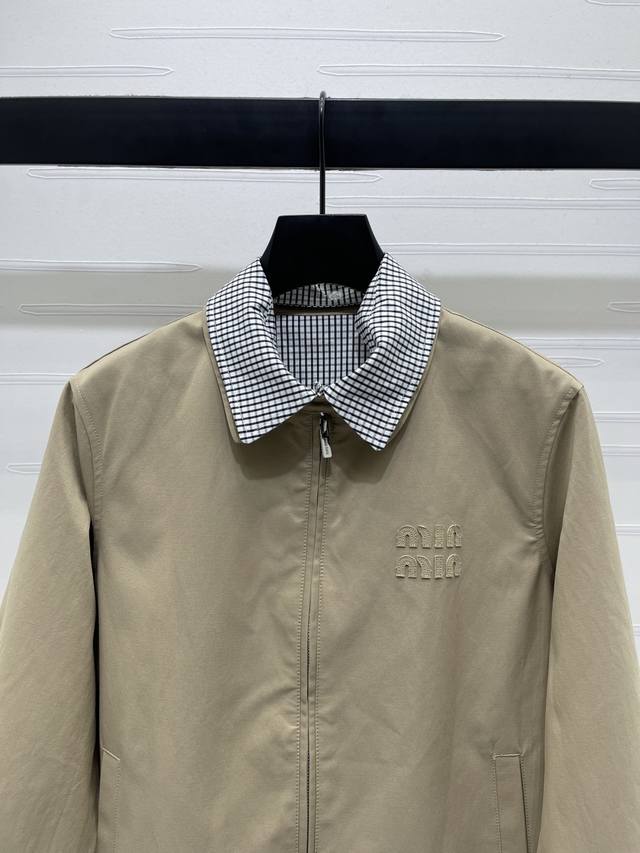New, original, high-quality, Miumi* 2025 Early Fall collection! Lapel trench coat! Custom-made imported trench coat with crisp, stylish texture. Premium trench coat jacket with lapels and straight shoulders for a commanding look. Contrasting plaid accents on the collar and cuffs create a refreshing and artistic look. The monogram logo on the chest adds a touch of luxury. Symmetrical slanted pockets on both sides create an elegant silhouette, combining fashion and practicality. A must-have for everyday layering, this trench coat exudes British elegance! 1 color! Sizes SM-L3! High-quality, bulky stock A706B580C