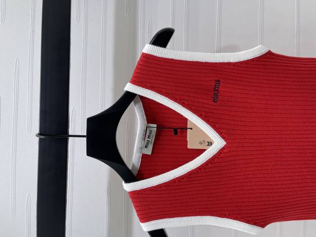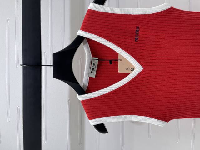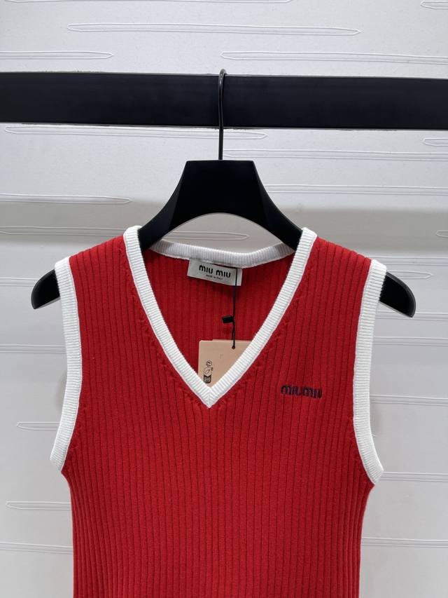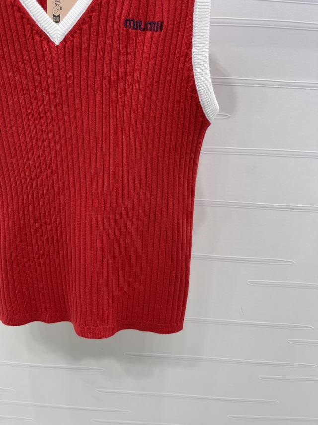 New, original, high-quality, Miumi* 2025 Early Fall collection! Ribbed V-neck knit vest! Custom wool yarn woven for a premium, comfortable, and soft V-neck knit vest. Ribbed knit throughout, with contrasting hems for a slimming effect. Highlights detail and texture. Exquisite and stylish embroidered logo on the chest. A versatile, collegiate style with a straight shoulder and a regular fit that accommodates any body shape. Stylish and casual! Available in 5 colors! Sizes SM-L3! High-quality, bulky stock A706B250C