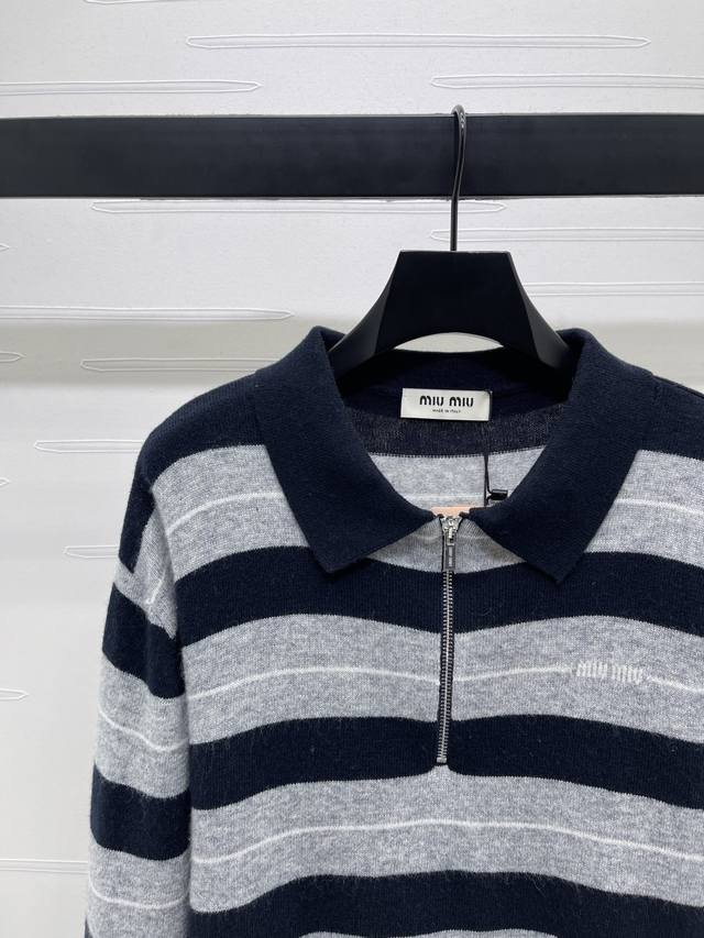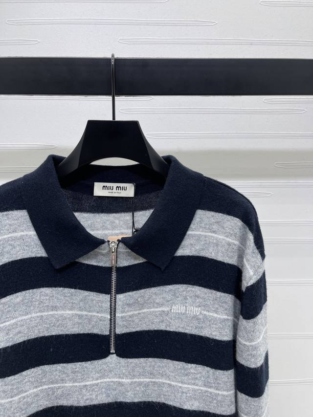 New, original, high-quality, Miumi* 2025 Early Fall collection! Striped knit lapel long-sleeved cardigan! Woven from custom wool yarn for premium stretch and comfort, it enhances head-to-shoulder proportions for a slimming effect. Signature chest logo and interwoven stripes create a retro, preppy look. A loose, stylish fit for a stylish and flattering look. Perfect for everyday travel or gatherings! Available in one color! 3 sizes SM-L! High-quality, bulky stock A706B380C