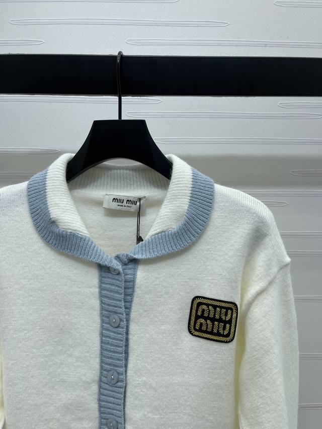 New, original, high-quality, Miumi* 2025 Early Fall collection! This contrast-colored lapel knit cardigan is custom-made with wool yarn, a dense, fine-needle technique for a noticeably wooly feel. Comfortable and stylish, this lapel cardigan features a solid color scheme with contrasting hems and crocheted textures. Tonal round button details create a full chest, accented with a wheat-like lettering for added branding. The regular, slim fit exudes Korean style, transforming you into a fall/winter idol! Available in one color! Sizes SM-L3! High-quality, bulky stock A706B390C