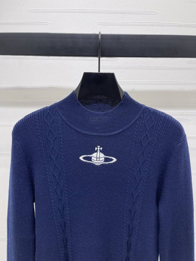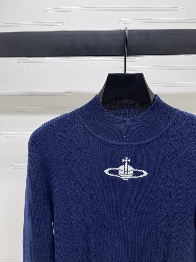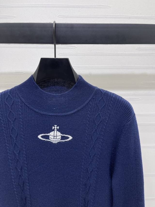 New, original, high-quality Vivienewestwoo* 2025 Early Fall collection! Half-high, knitted long-sleeved top with a Saturn logo! Custom-made imported knit material, soft, comfortable, and refined. Half-high collar, knitted long-sleeved silhouette. The Saturn jacquard logo on the chest is eye-catching and easily highlights the brand's identity! Available in two colors! Sizes SM-L3! High-quality, bulky stock!