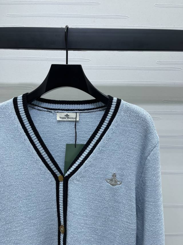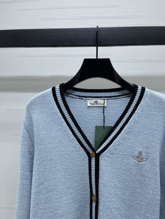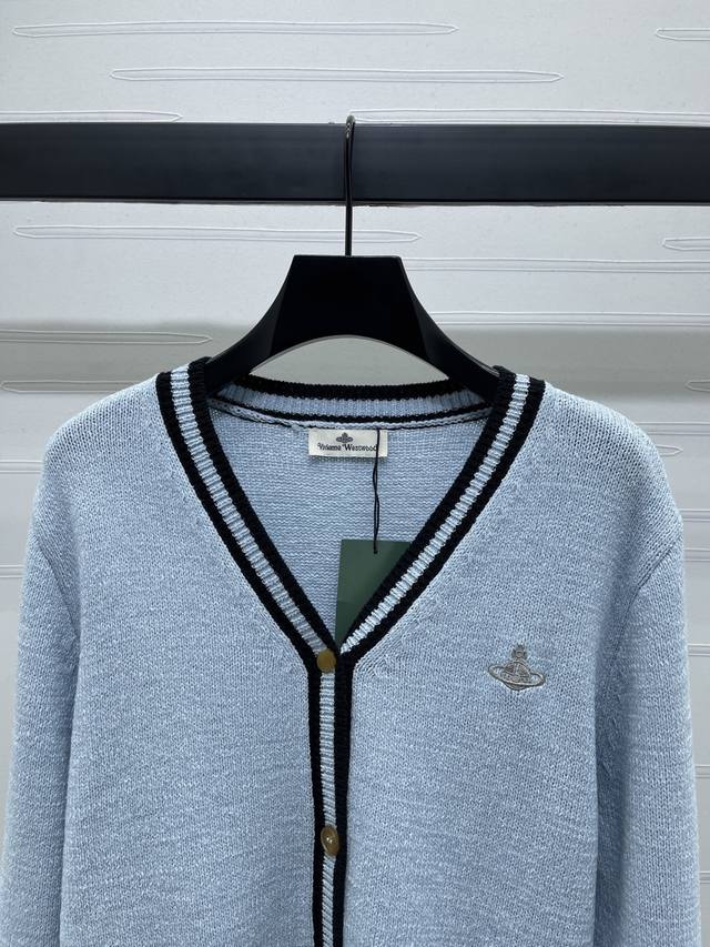 New, original, high-quality Vivienewestwoo* 2025 Early Fall collection! V-neck, long-sleeved cardigan, available on the official website! Custom-made, imported wool yarn for a textured, rich feel. Single-breasted, button-down cardigan with contrasting stripes, ribbed lace trims at the cuffs, hem, and neckline, extending to the placket. Elasticity enhances refinement, creating a slimming silhouette with a sculpted, sculpted fit. Saturn embroidery on one side accentuates a relaxed feel! 3 colors! Sizes SM-L3! High-quality, bulky stock A706B330C