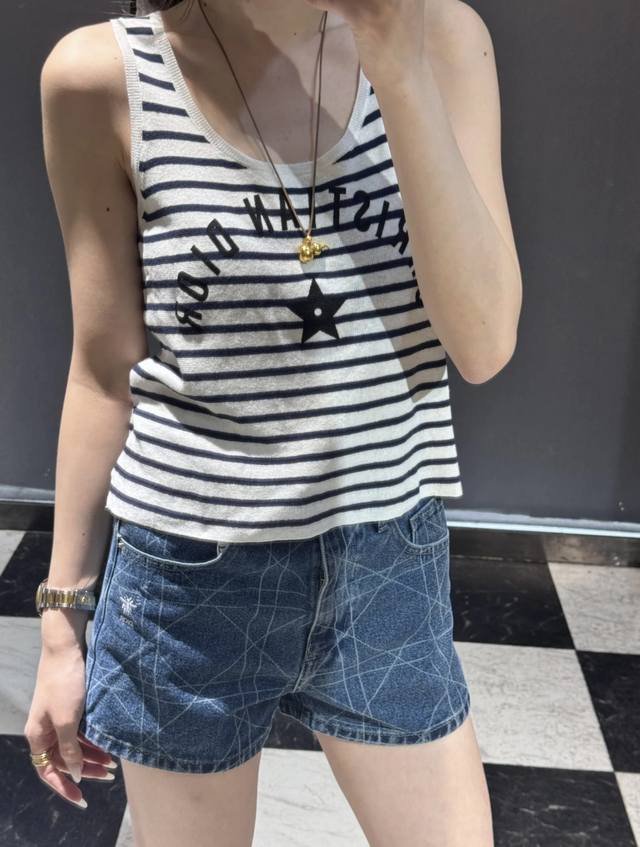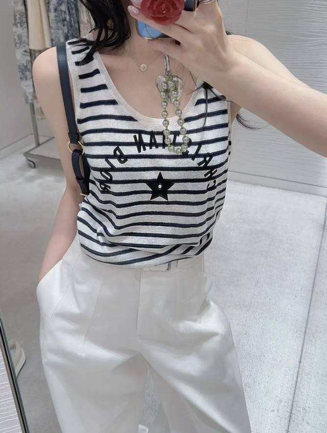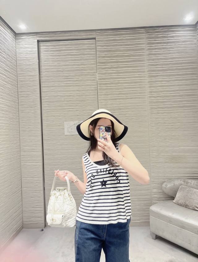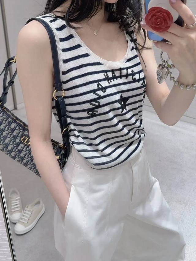 New [P]! Latest D 25New letter print striped knitted vest. Size: Sml. . DDD