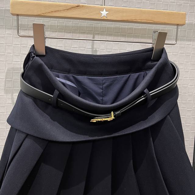New Patchwork Ruffled Faux Two-Piece Design Arc de Triomphe Belt Pleated Skirt w