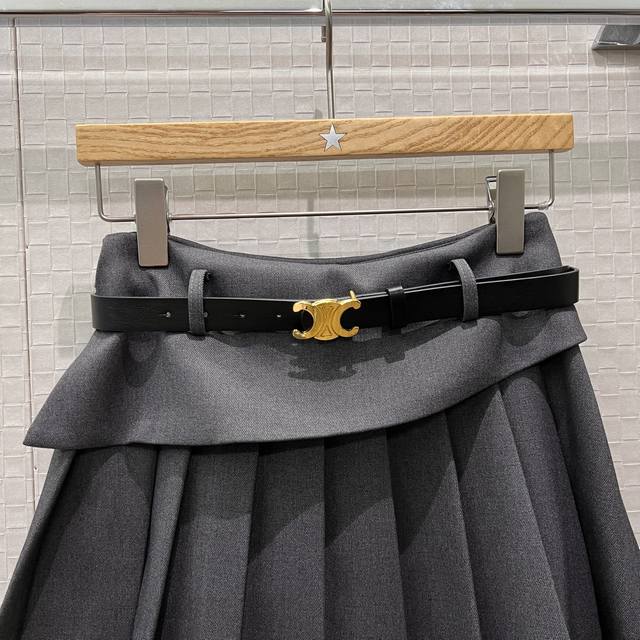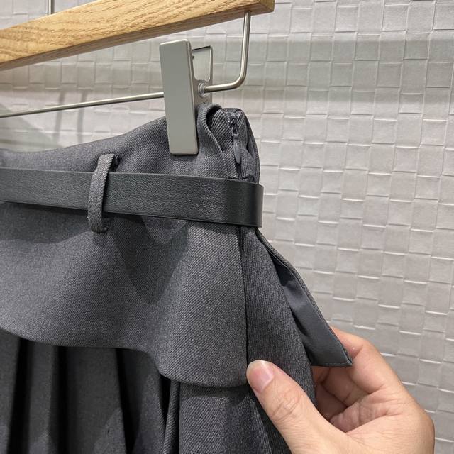 New Patchwork Ruffled Faux Two-Piece Design Arc de Triomphe Belt Pleated Skirt w