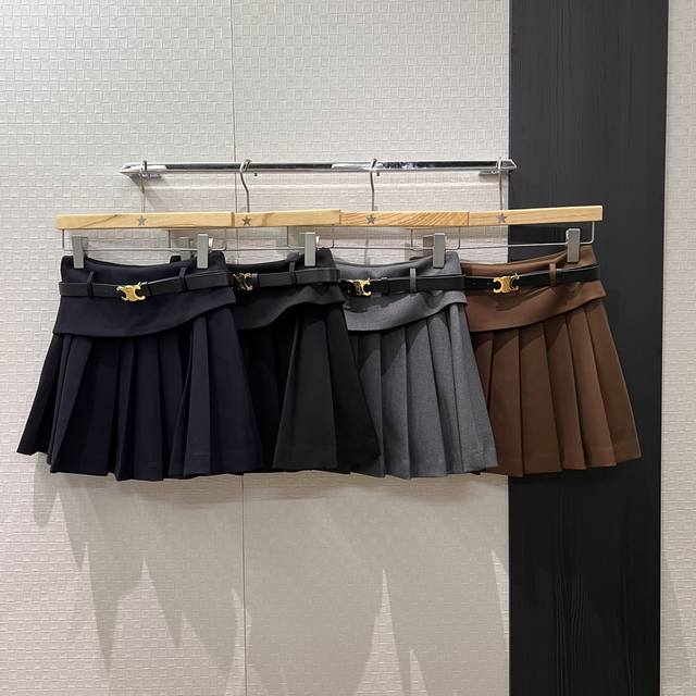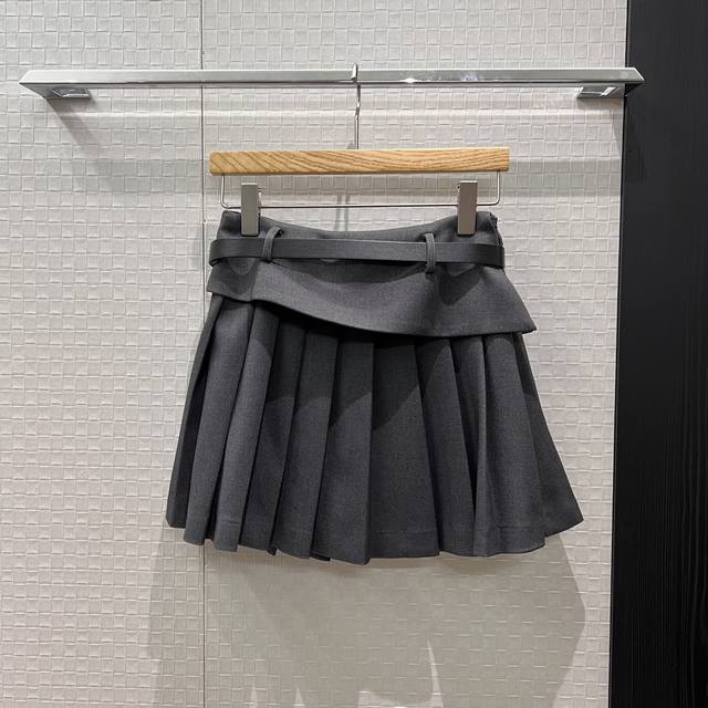 New Patchwork Ruffled Faux Two-Piece Design Arc de Triomphe Belt Pleated Skirt with Lined Shorts - Casual, Versatile, and Youthful - Must-Have - Black, Dark Blue, Dark Gray, Brown - Sizes S-XL,